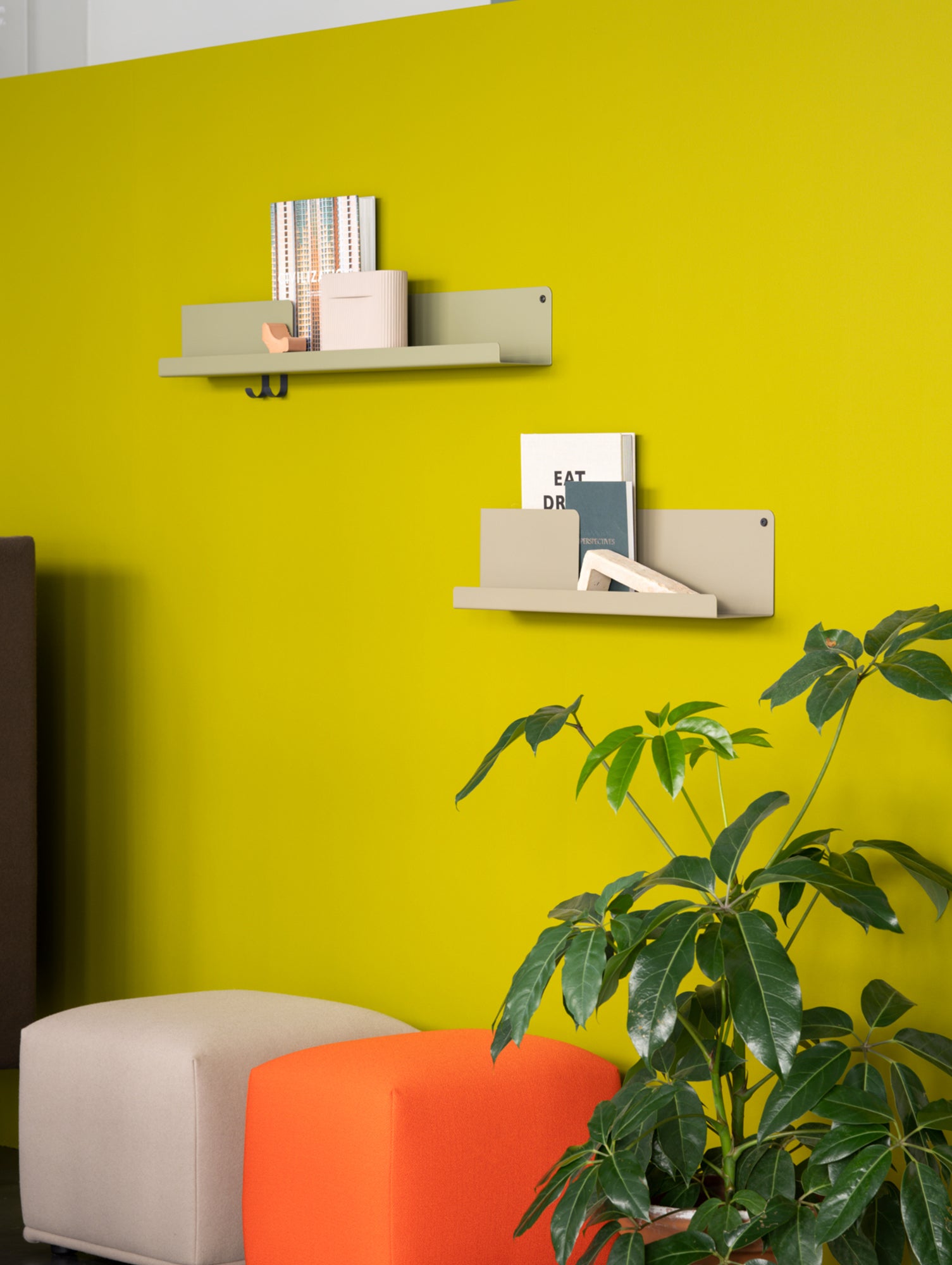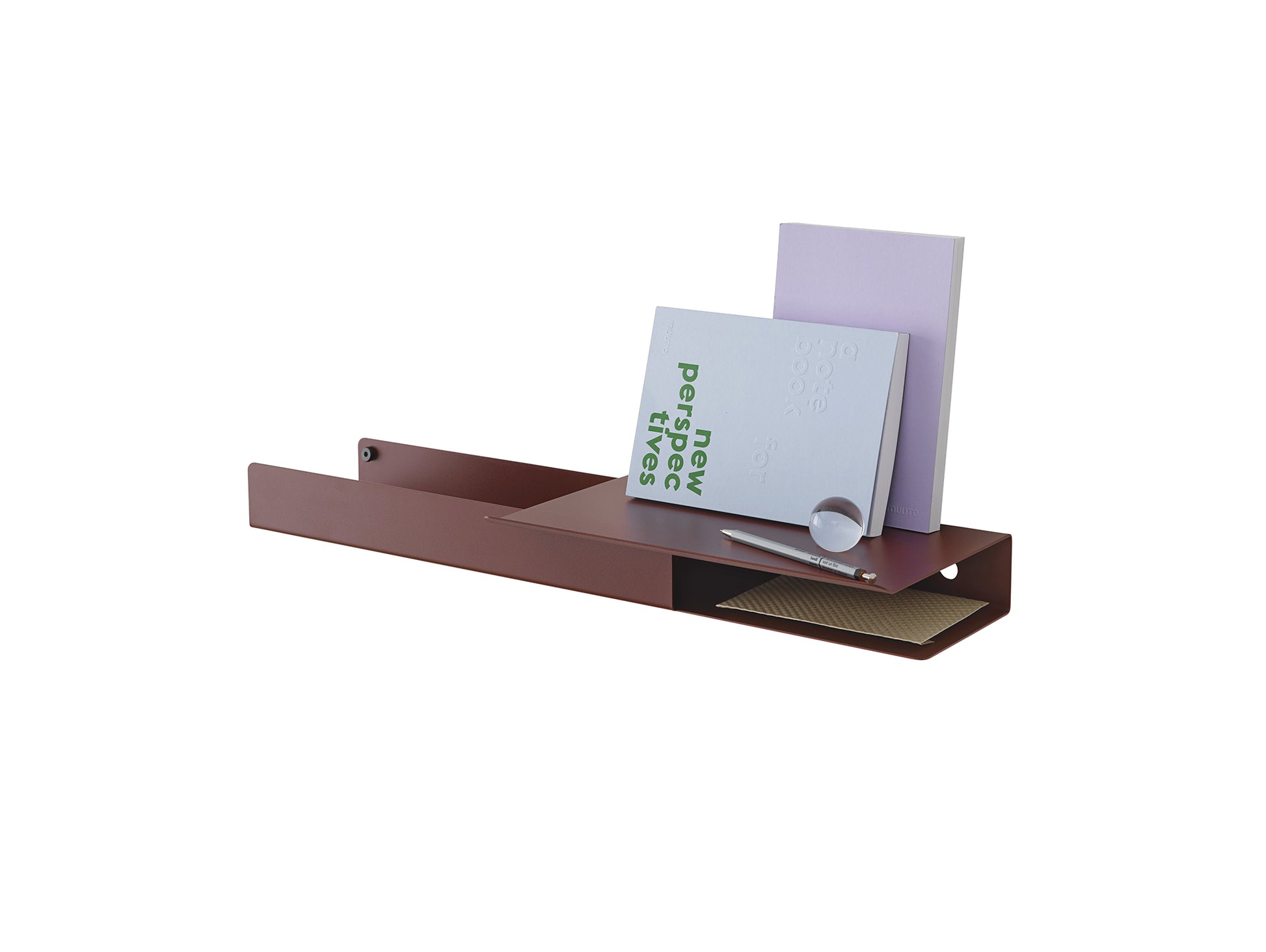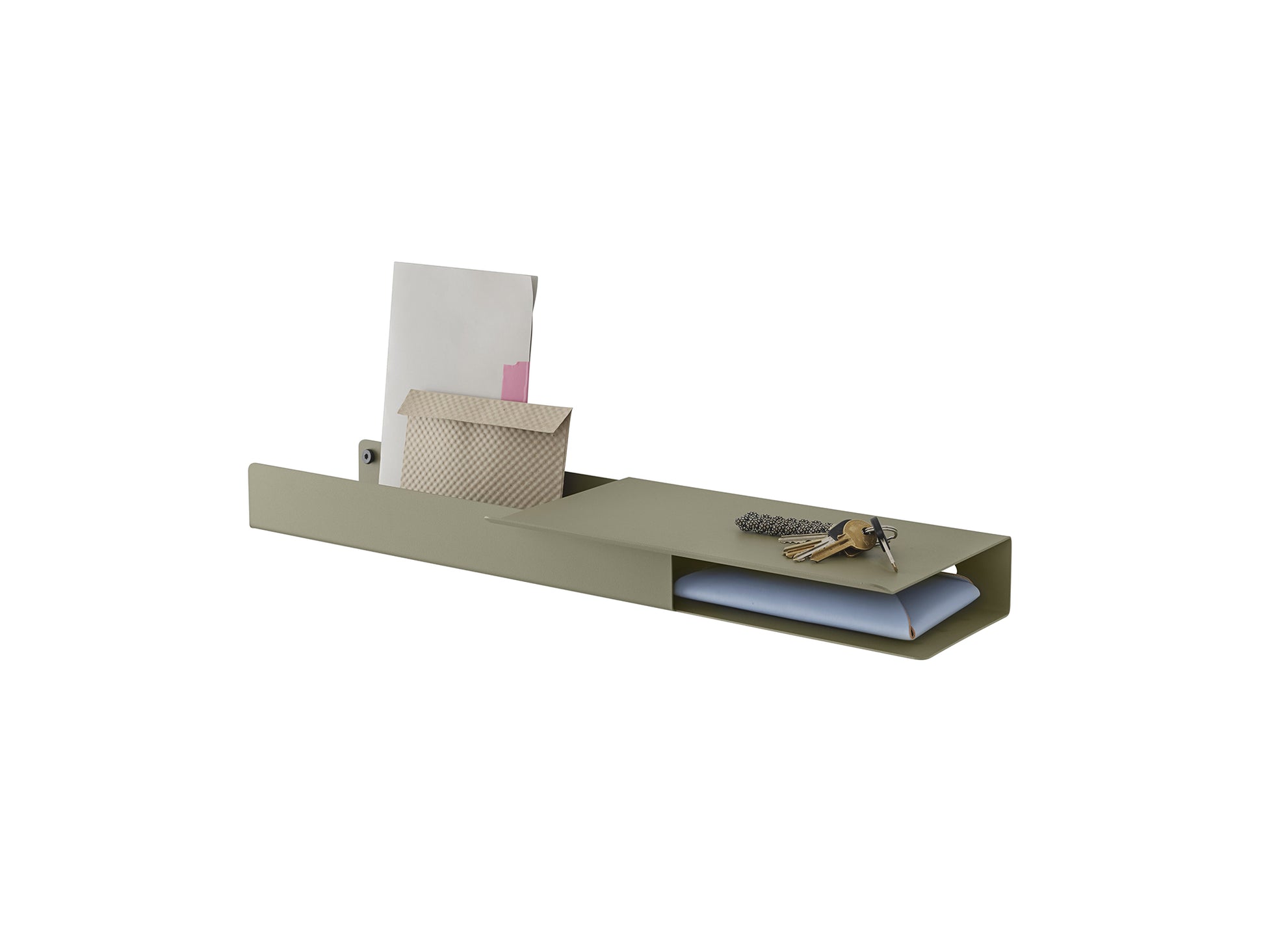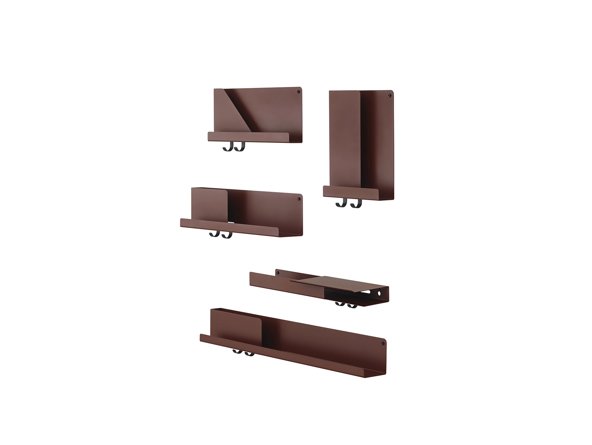 Johan Van Hengel on the Design "Inspired by the shadow-play of layers, 'Folded' is based on a seemingly simple bending technique of a single sheet of metal to create pockets which hold and separate your items. Featuring a subtle bolt and hooks for hanging objects, it is a versatile wall mount that can be used in both a practical and a decorative manner - suitable for organising anything from mail to books, perfumes or spices, or just displaying your favourite belongings".
