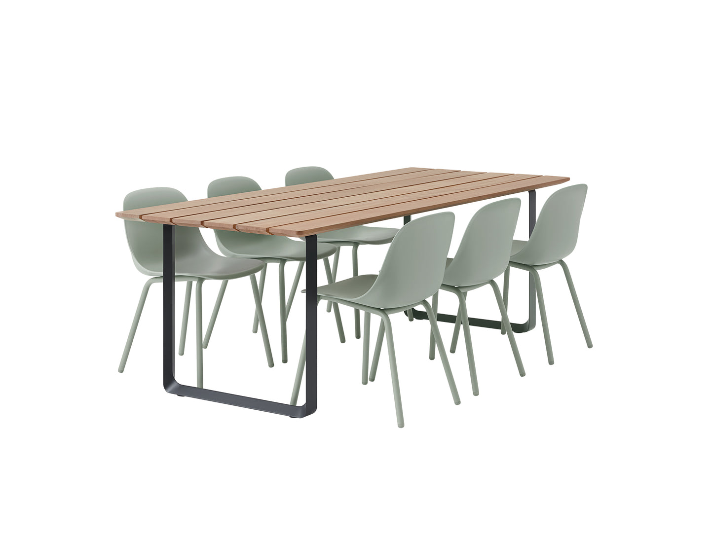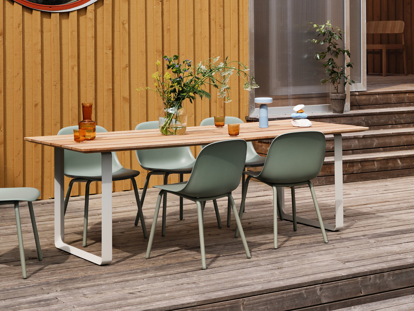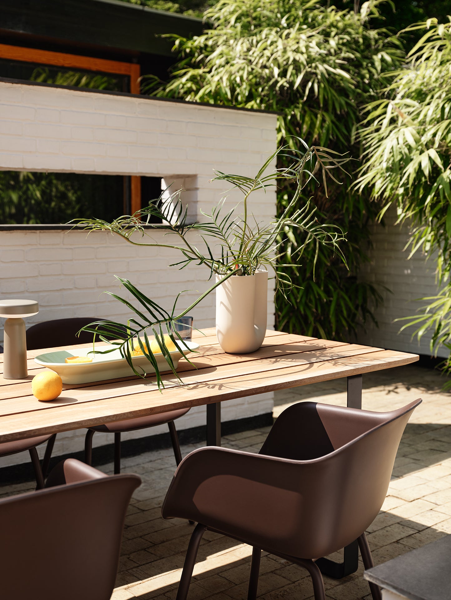 Untreated Mahogany wood will patinate over time, turning a silver shade of grey. To achieve a deeper, warm glow and a more reddish expression, treat with wood oil. Sapele Mahogany is a natural material, so colour and wood grain variations can occur from one piece to another. Over time, small cracks may develop at the tips of the wooden planks due to weather impact. Also, the wooden planks may warp slightly over time, resulting in a minor height difference between them. When exposed to direct sunlight, please note that objects left on the table for an extended period can lead to colour differences in the tabletop. However, these differences will even out over time once the object is removed.