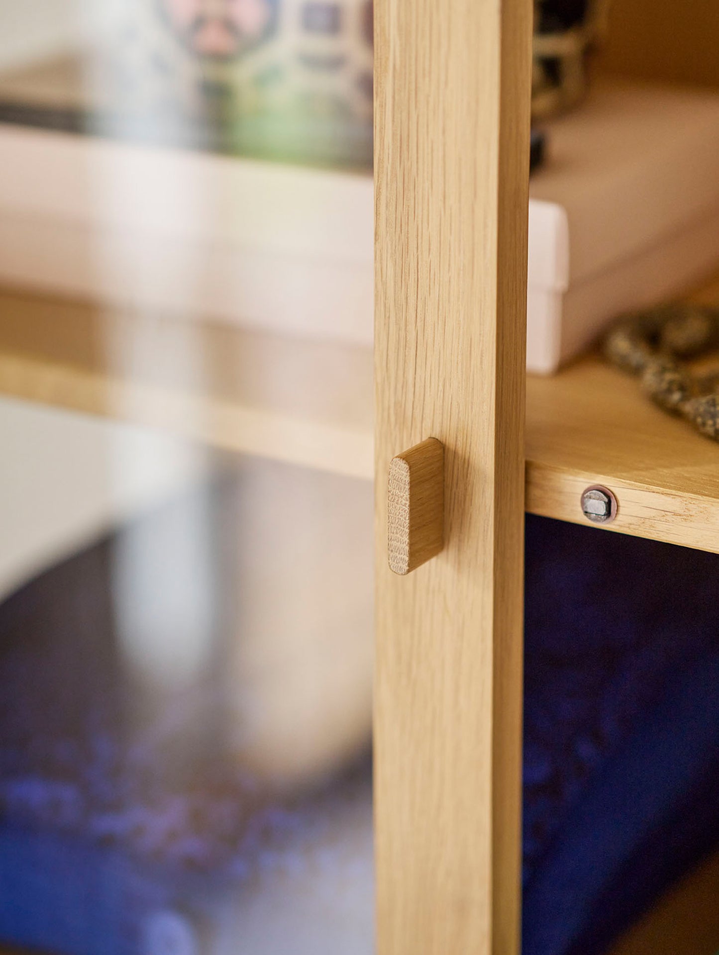 Created by Danish industrial designer Rasmus Appel, the A90 Display Cabinet reflects his vision of what a modern wooden display cabinet should be. Inspired by boat-building and the elegant oak dinghies known for their fine proportions, construction, and joinery, the cabinet is designed with precision and craftsmanship, making it both practical and durable. It combines contemporary design with simplicity, resulting in a minimal and functional piece suitable for any interior.