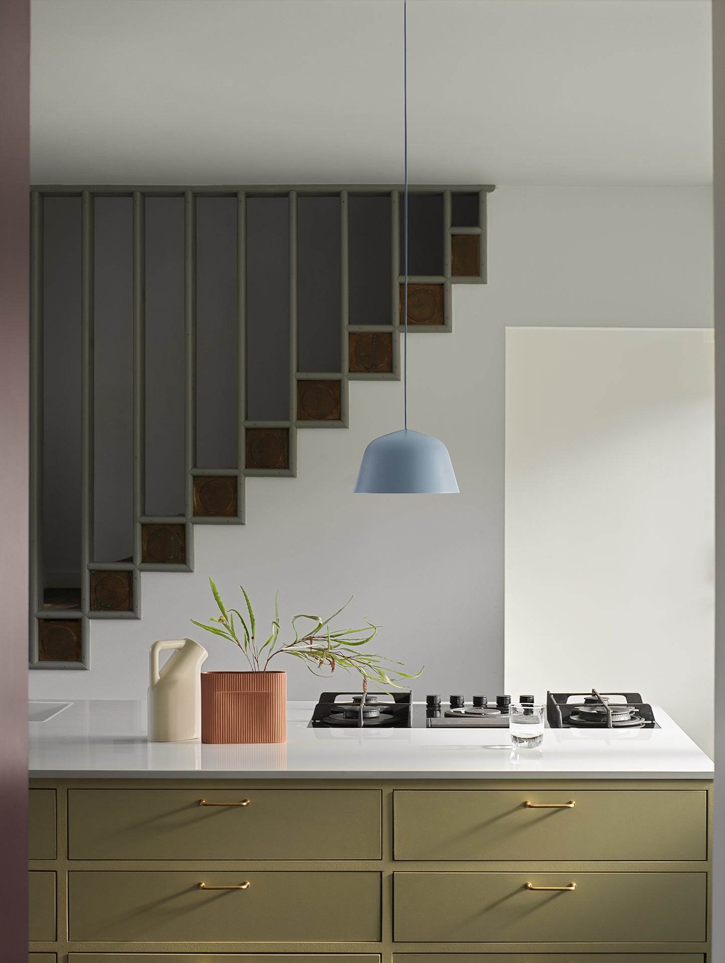 TAF アーキテクツはデザインについて次のように述べています。 「なぜ特定の形に惹かれ、他の形には惹かれないのでしょうか?アンビットでは、非常に徹底的かつほとんど細心の注意を払ってフォームとプロポーションを調整しました。直線と丸みを帯びた形状の間にダイナミックさがあり、魅力的な輪郭を作り出します。いつまでも見飽きないタイムレスなペンダントです。ランプシェードは軽量の紡績素材で作られており、内側の白とのデュアルトーンが繊細なコントラストを加えています。」