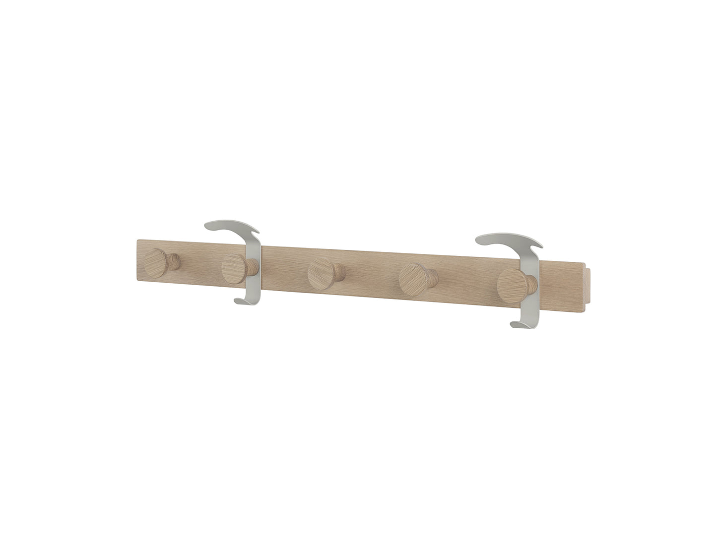 スカンジナビアの素材感を中心にデザインされたアベイル コート ラックは、シンプルさと機能性のアイデアを現代の住宅にもたらします。金属製のフックは継続的に並べ替えることができ、オーク材の表面の温かみのあるタッチに色のノートを加えます。アベイル コート ラックは、変化する日々のニーズに合わせて進化し、画像、ポストカード、その他のオブジェクトを配置できる小さな台地で私たちの視点を反映できます。