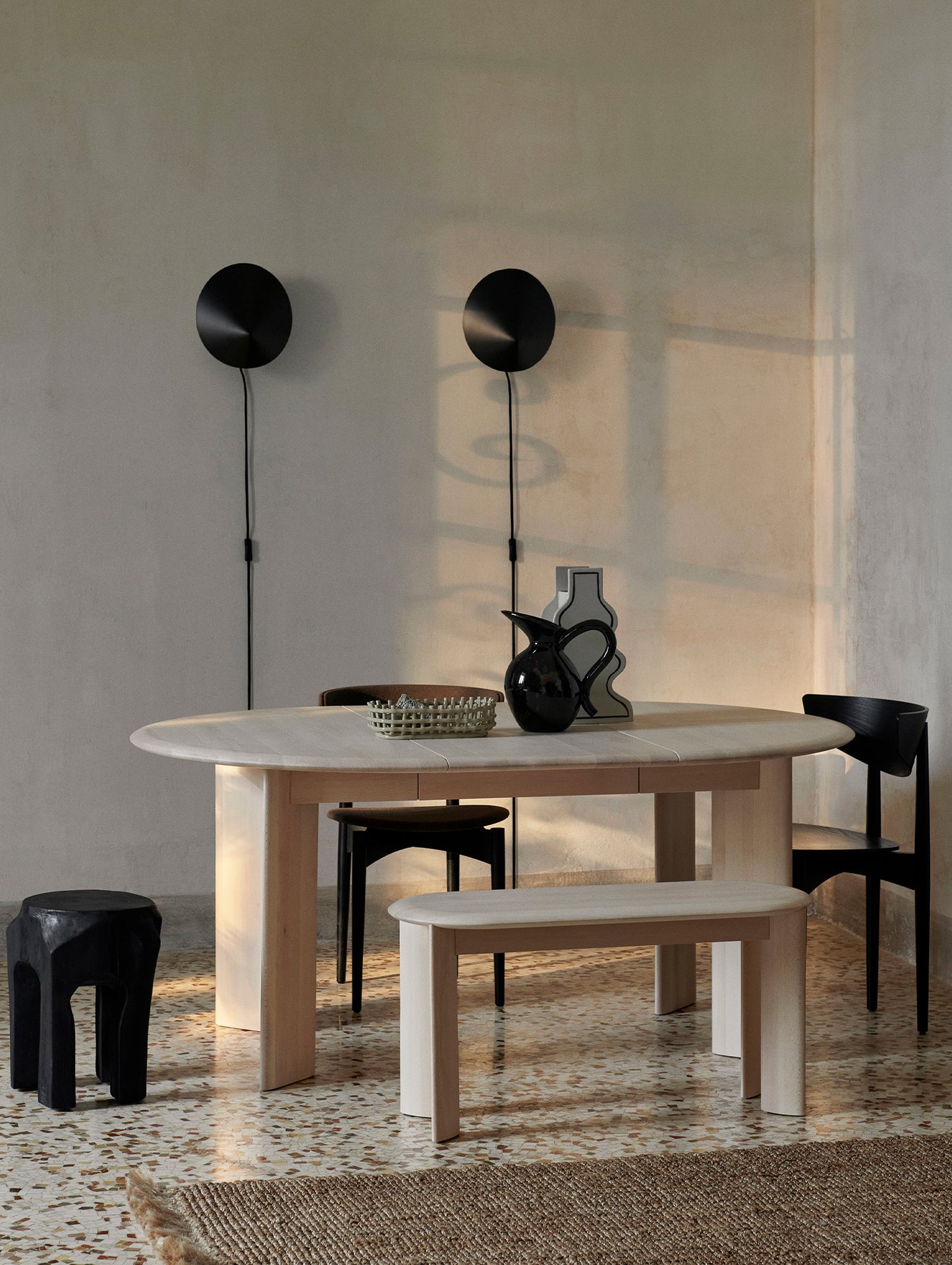 オーク無垢材のみで作られており、仕上げオプションはブラック オイルド オーク、ホワイト オイルド オーク、またはホワイト オイルド ブナからお選びいただけます。フェルム リビングのベベル ベンチの幅広で平らな脚は、クラシックなデザインにモダンなエッジを加えています。