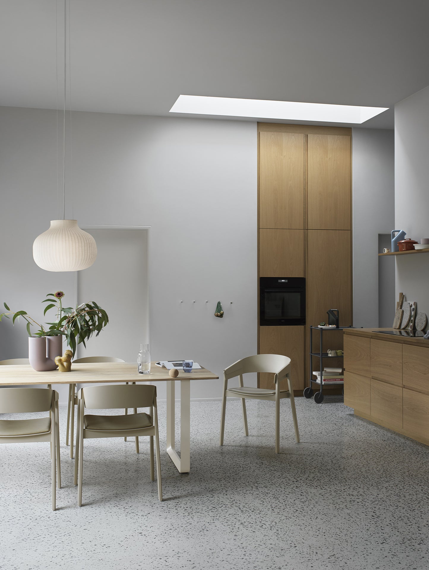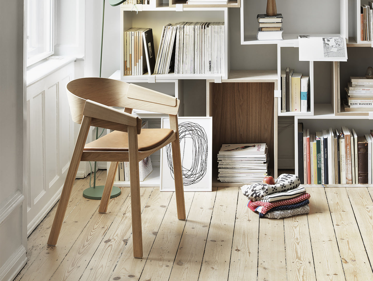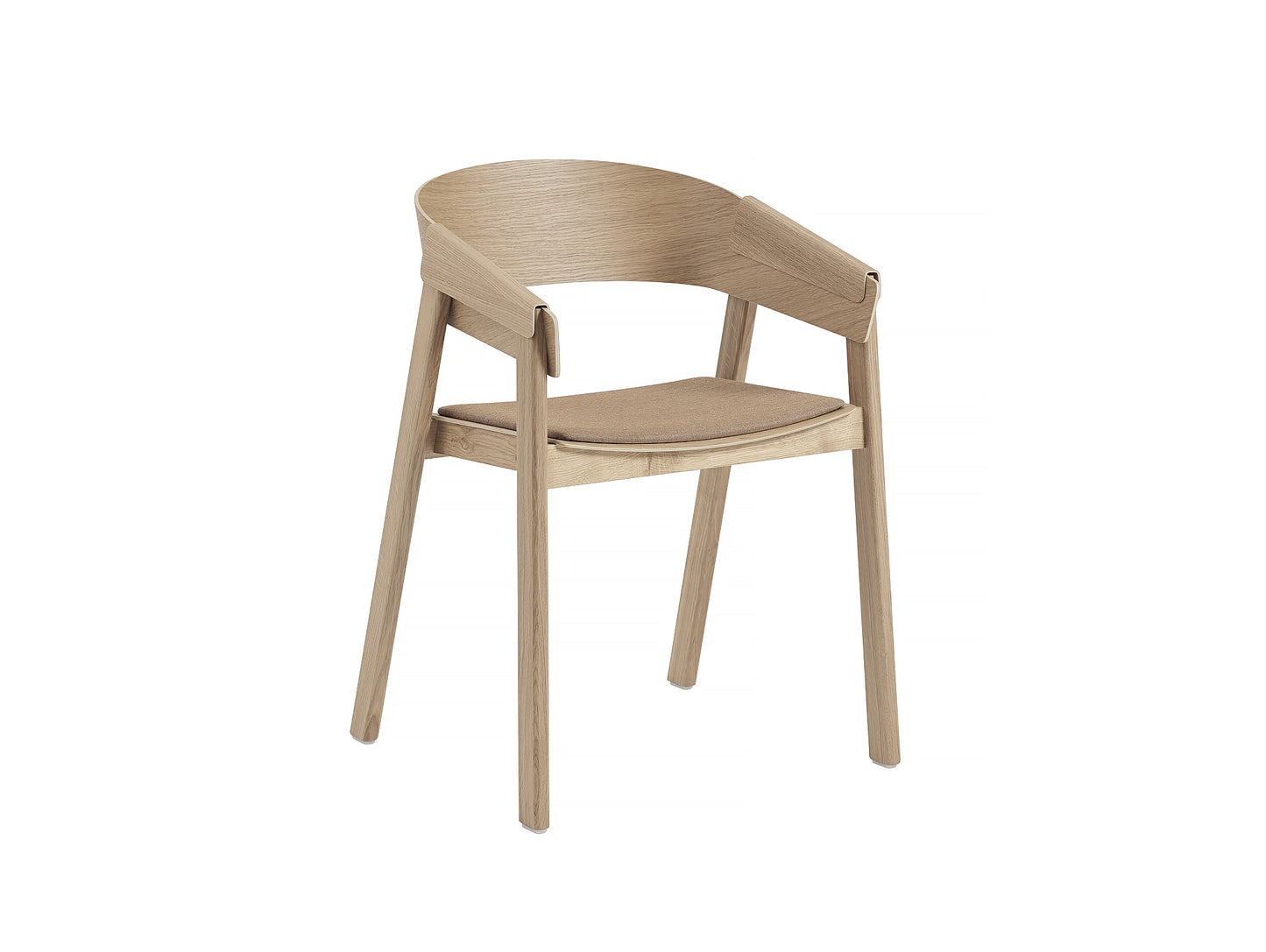 布張りのカバー アームチェアは、全木製のカバー アームチェアとよく合い、同じ Muuto 製品ファミリーのカバー ラウンジ チェアとカバー サイド チェアを補完します。