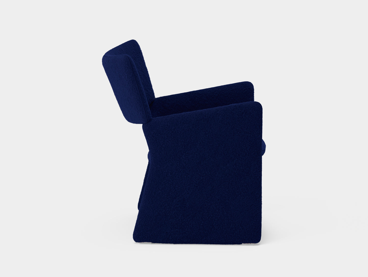 Massproductions の共同創設者兼最高デザイナーの Chris Martin によってデザインされたクラウン イージー チェアは、機能的でありながら見た目にも美しい、ユニークで遊び心のあるデザインが特徴です。マーティンは、布張りの椅子を 4 枚の成形パネルのみに減らすことで生産プロセスを合理化し、その結果、どんな環境でも目立つ独特の彫刻のような美学が生まれました。