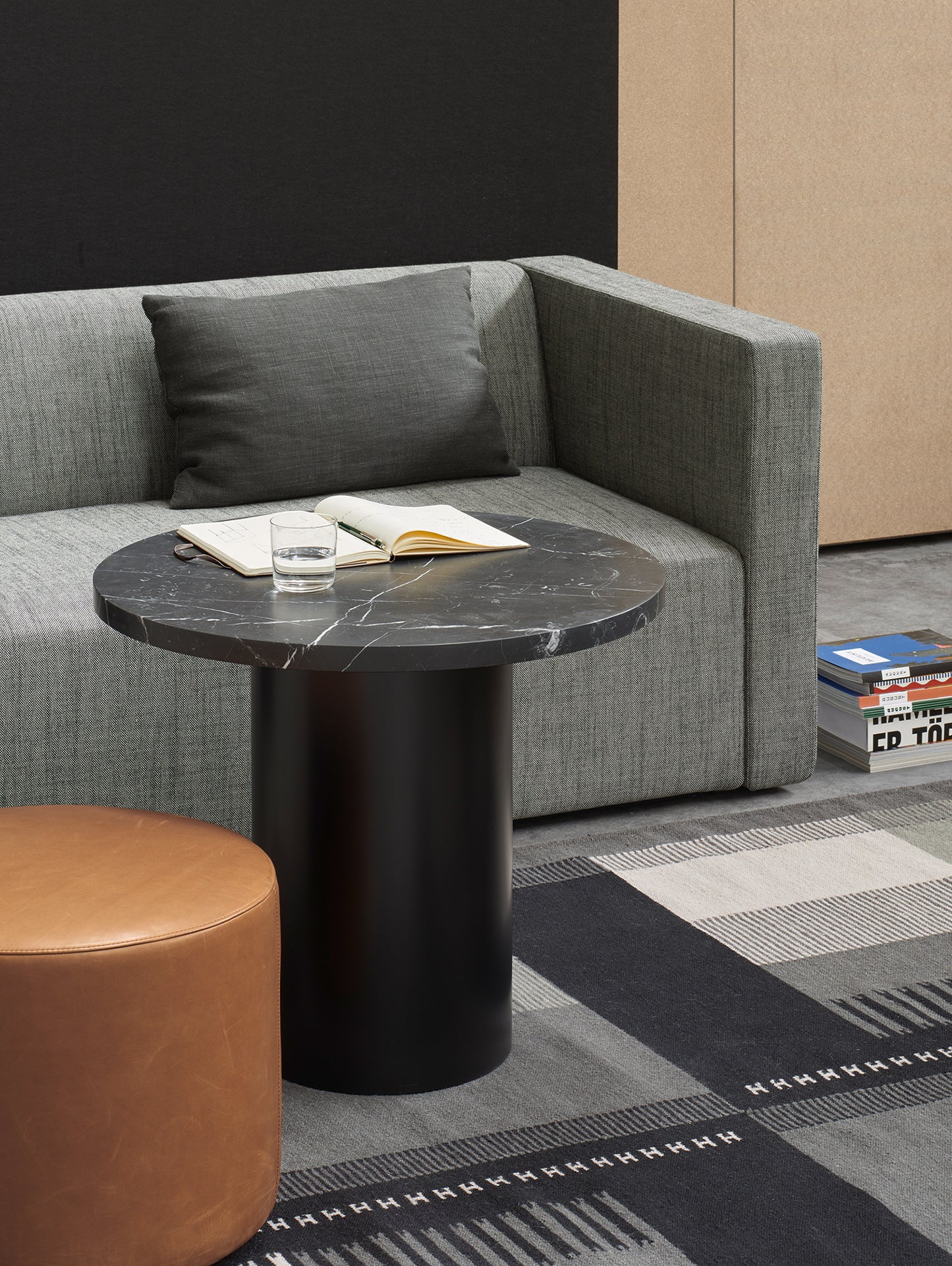スマートさと遊び心で 建築家フィリップ・マインツァー e15 によるエノキ (日本のキノコの一種) サイドテーブルは、パワーコーティングされた金属と天然大理石を組み合わせ、斬新なフォルムに応用しています。素材、色、寸法を巧みに組み合わせた多用途のサイドテーブルは、豊かな大理石とカラースチールの幅広い組み合わせで提供されます。