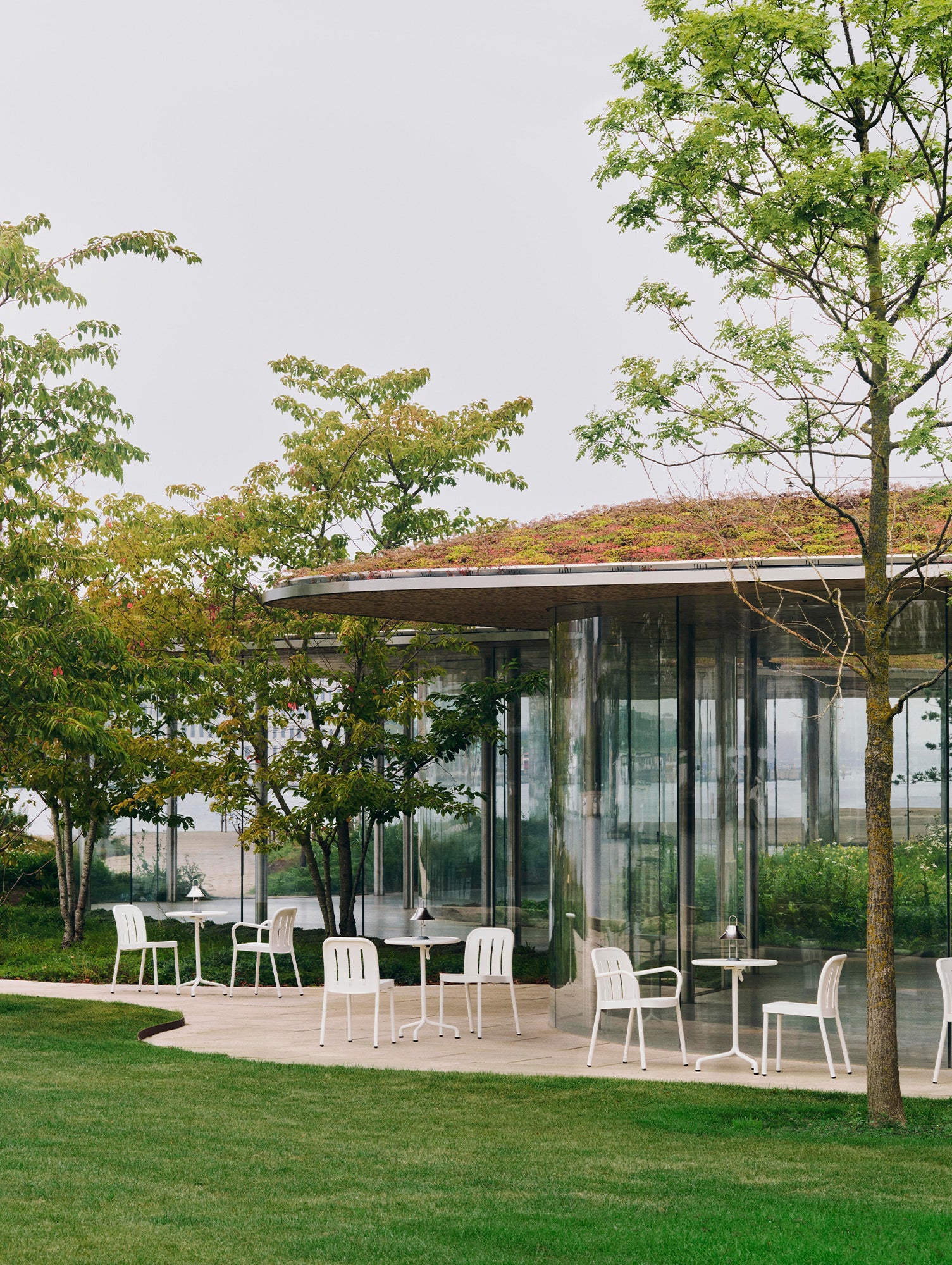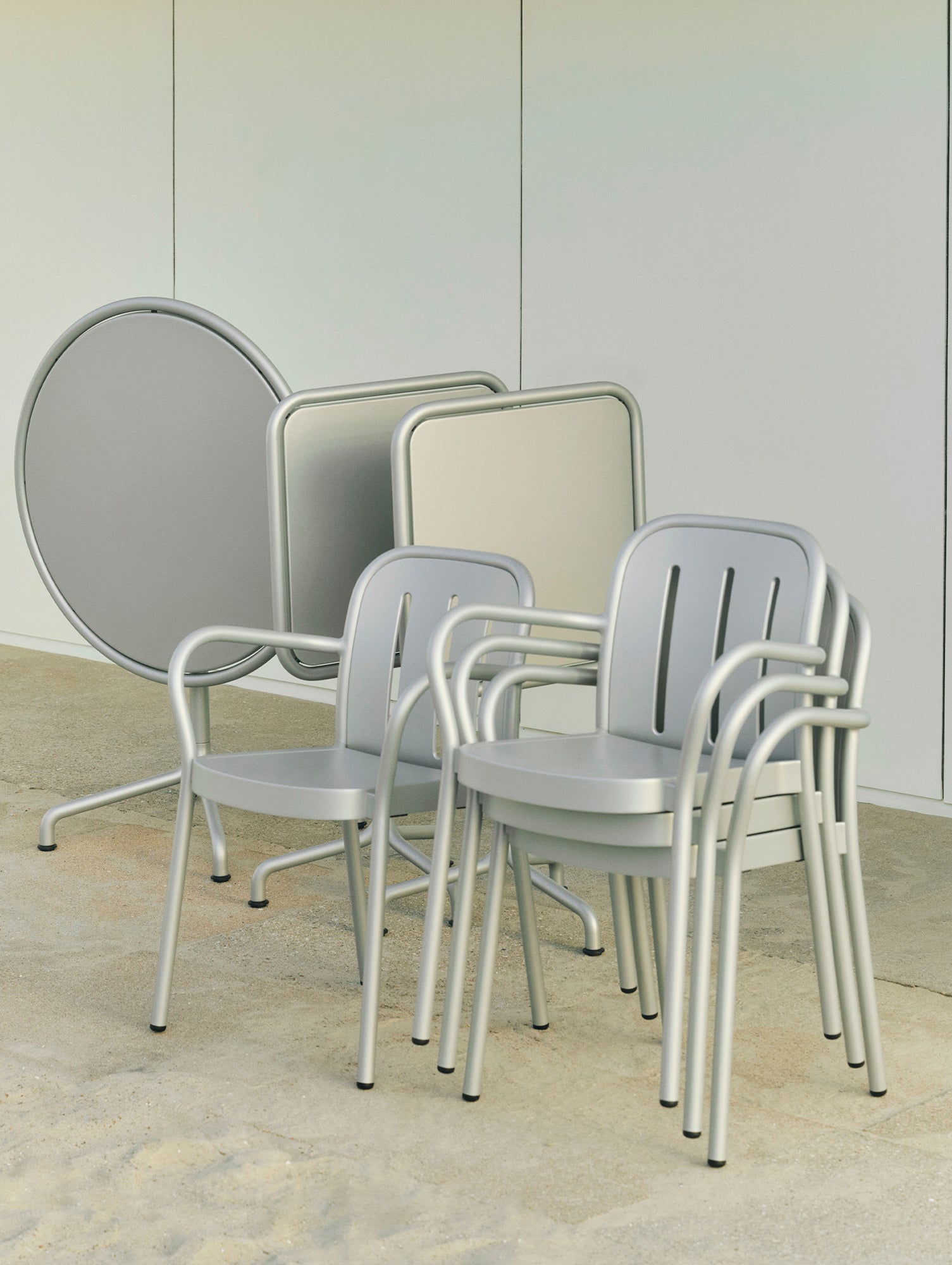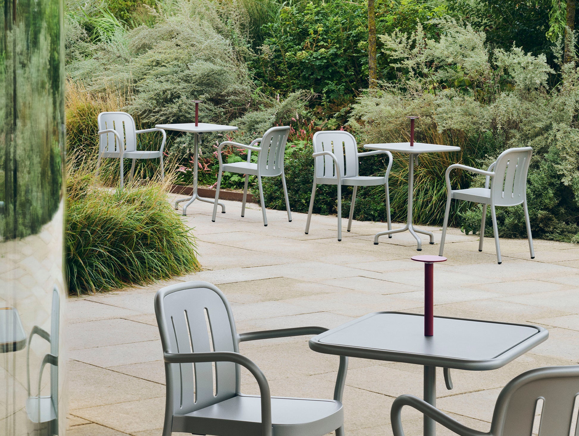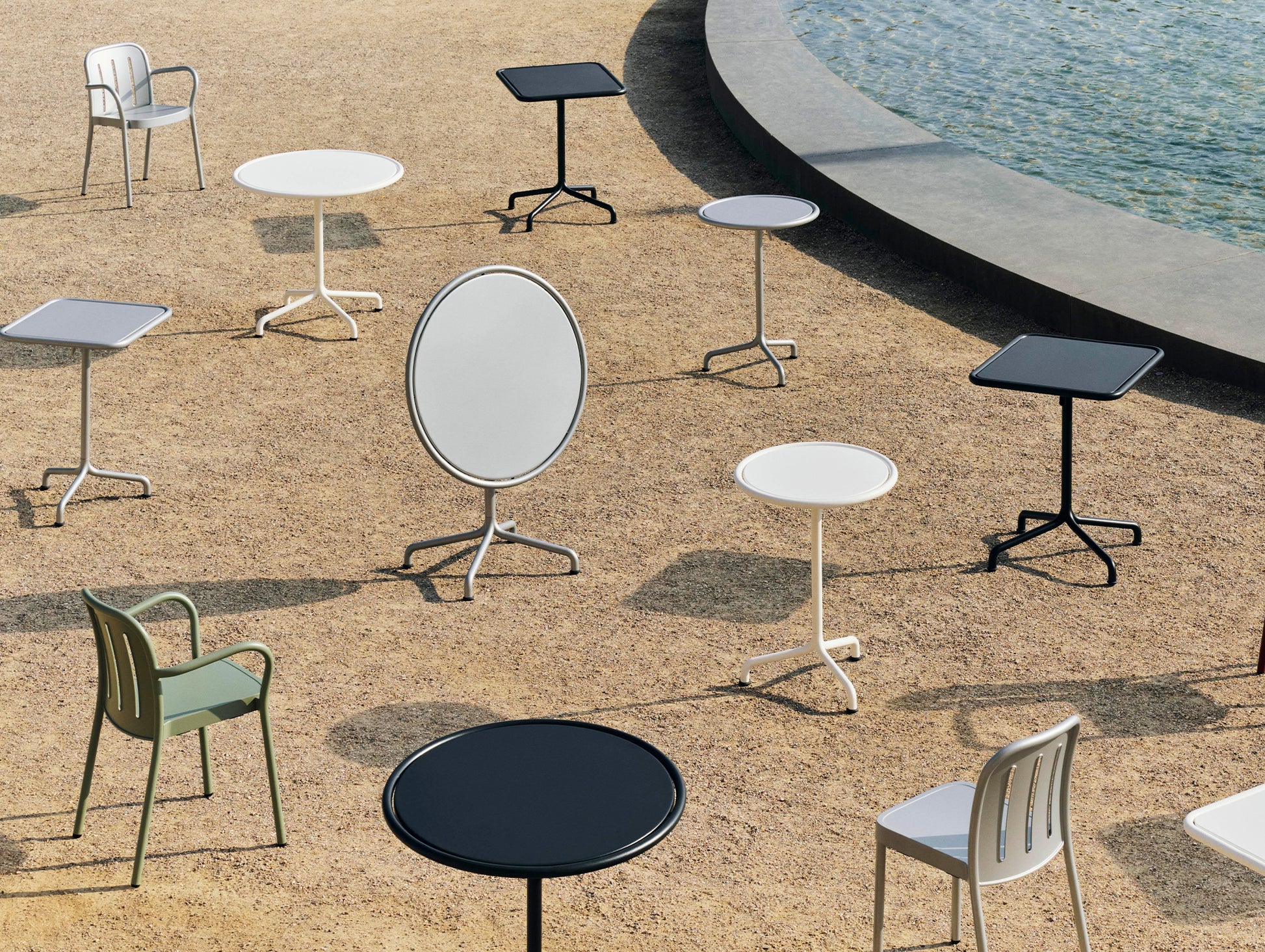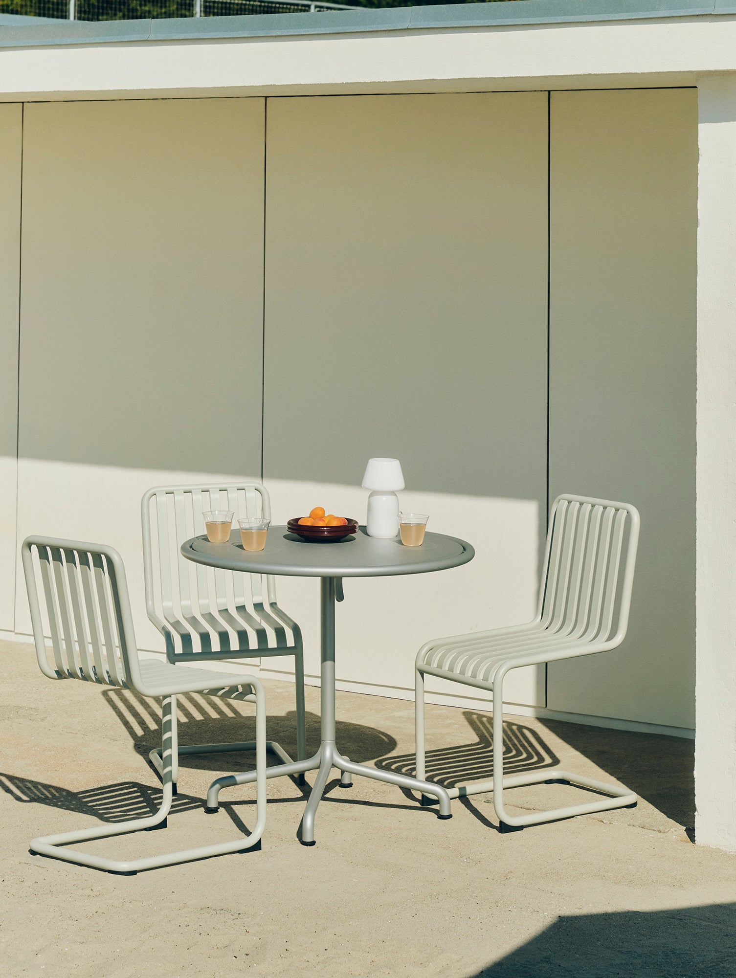 Designed by Julien Renault, the Deville Table offers a contemporary take on the classic bistro set, reinterpreting a familiar typology for today’s outdoor life. Defined by generous proportions and softly curved frames, the table balances durability with an open, welcoming character, offering a comfortable place to sit, linger and enjoy time outdoors.