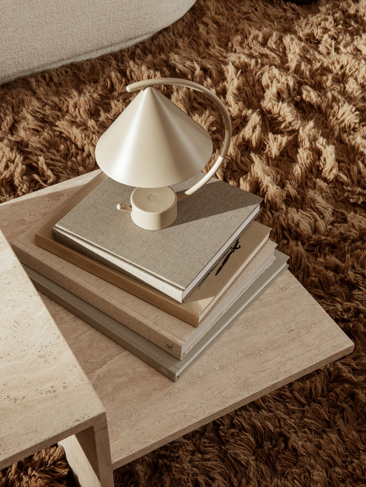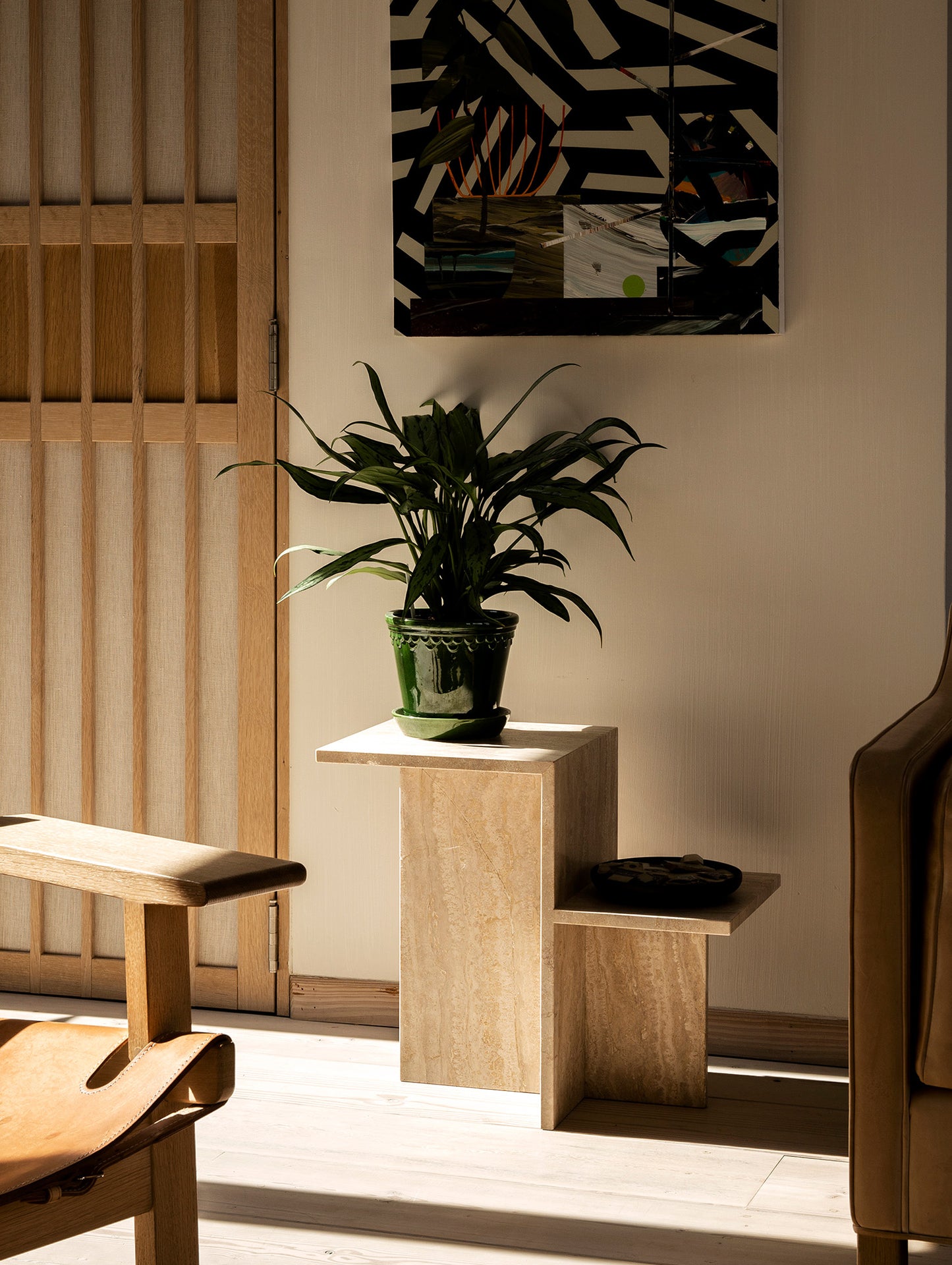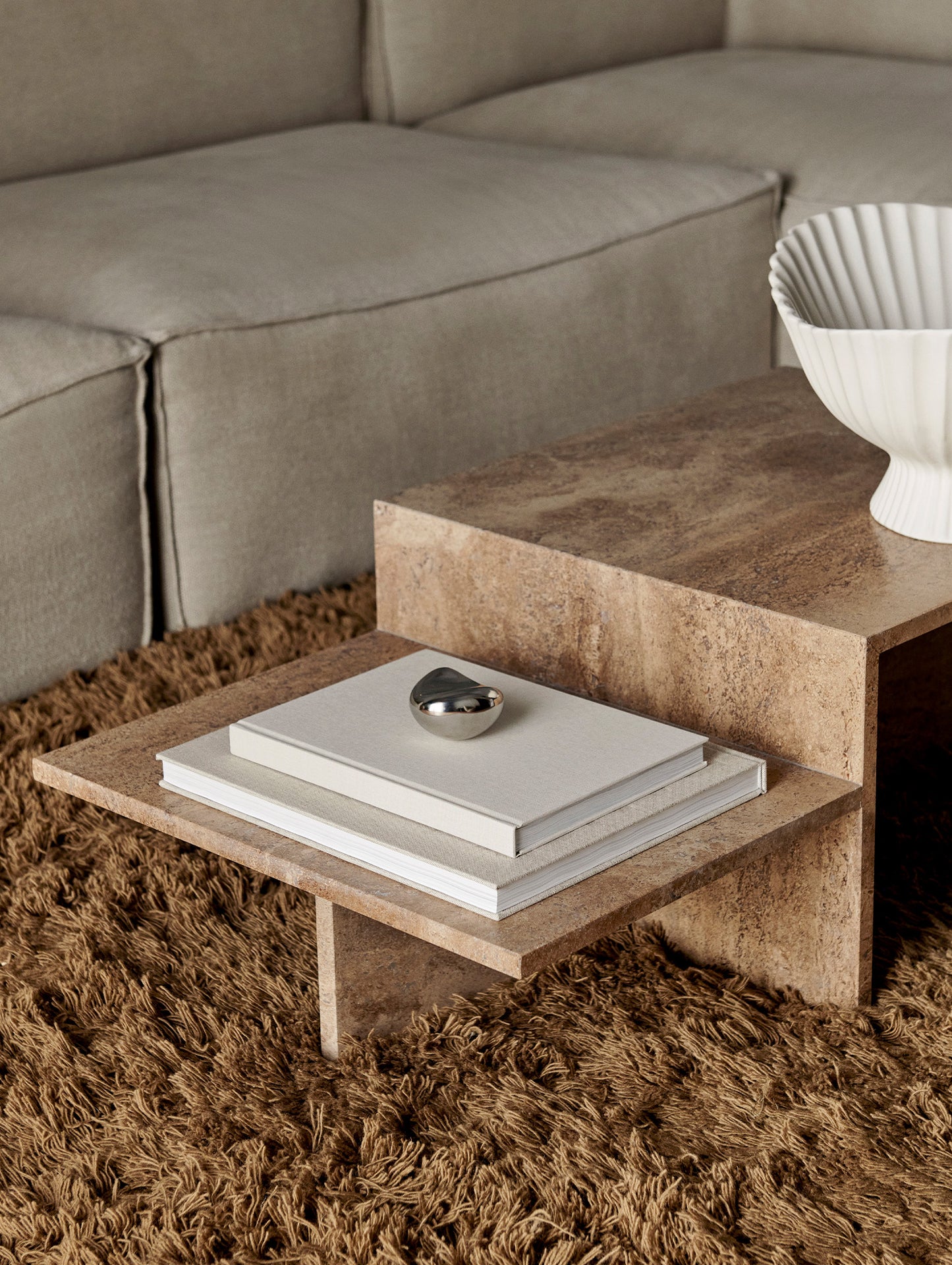 ディスティンクトサイドテーブルとコーヒーテーブルは、Ferm Living によってデザイン、製造されています。もともと日本のミニマリズムからインスピレーションを得た Distinct Tables は、単一の要素に基づいた複雑な構造の作成を探求しています。ミニマルな構造は、トラバーチンの素朴な質感の豊かさとコントラストを生み出します。砂色の石灰岩の自然で多様な性質により、テーブルの建築上の特徴を際立たせる生々しさと触感が生まれます。