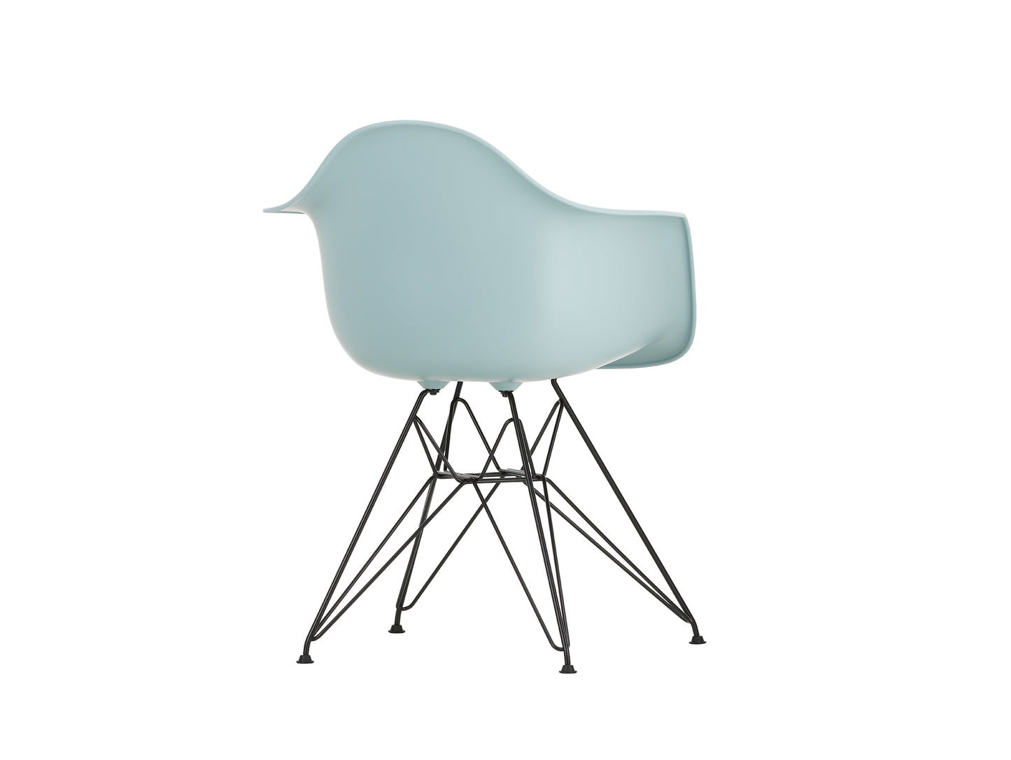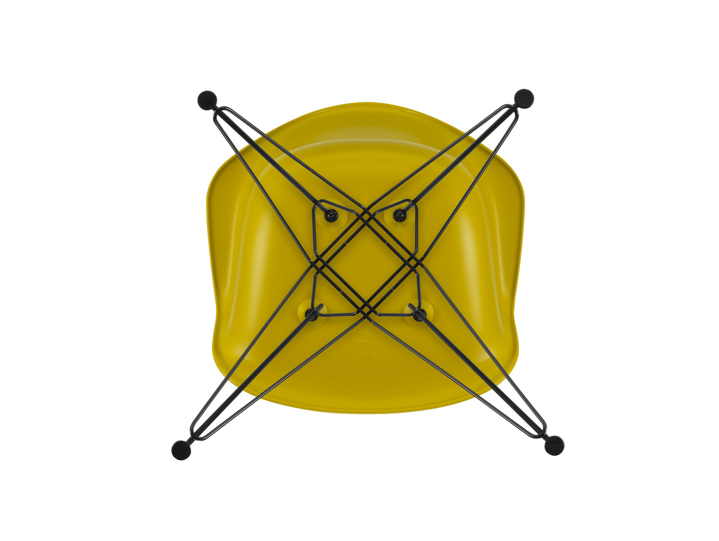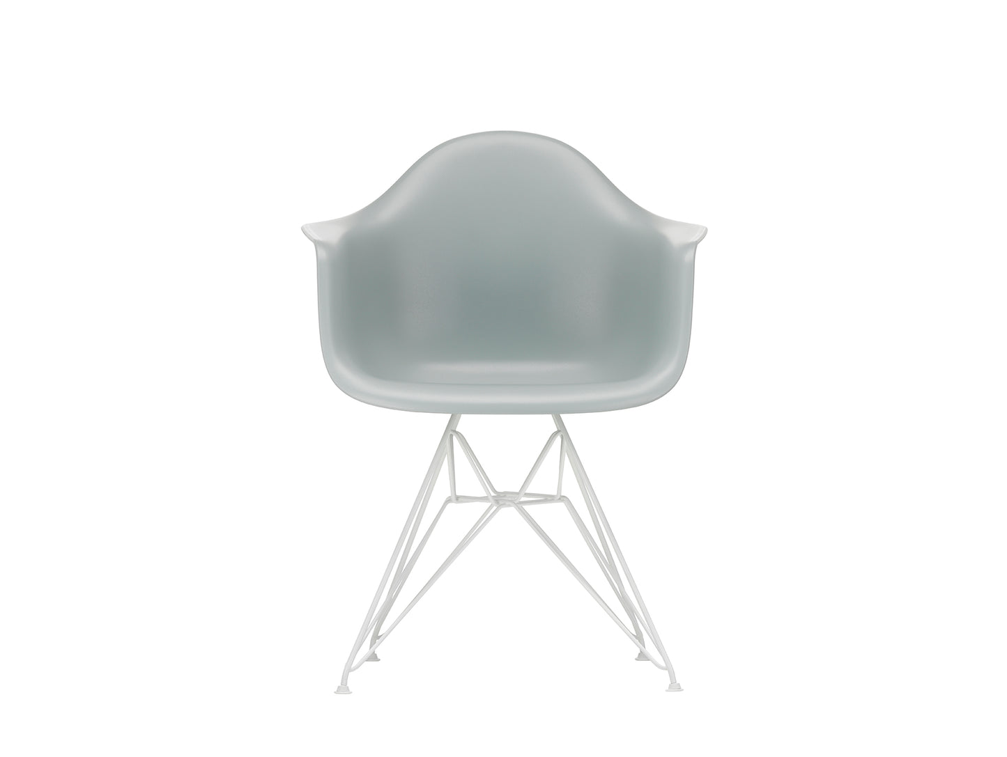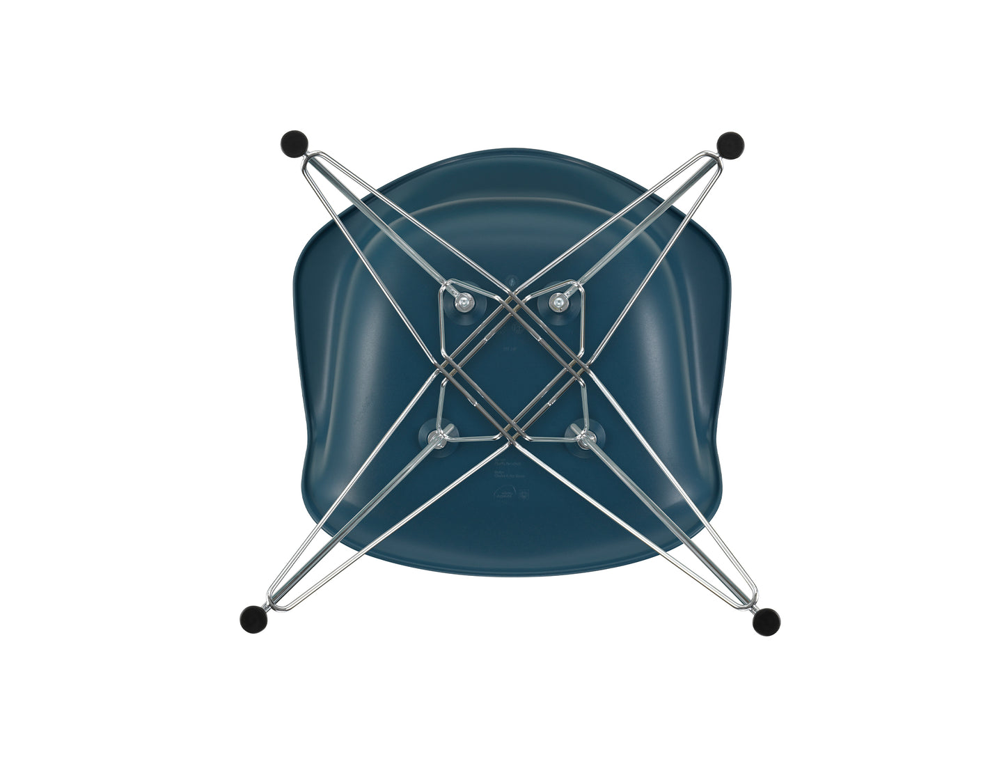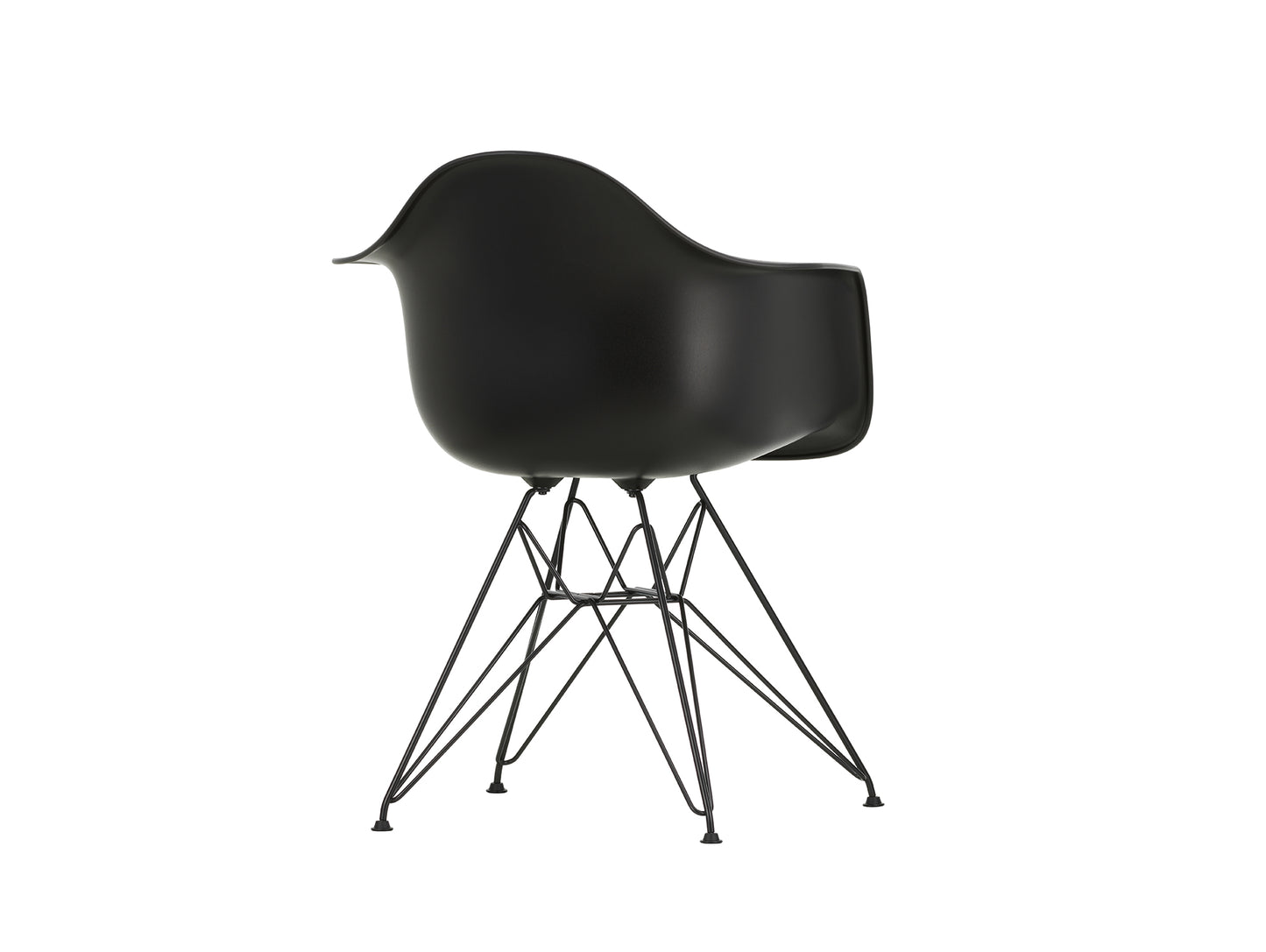 イームズ DAR プラスチック アームチェア RE は、クロームメッキの「エッフェル塔」スタイルの脚ベースを備えた、伝説的なグラスファイバー椅子の現代版です。これは、ニューヨーク近代美術館の低コスト家具デザイン コンペティションでゼニス プラスチックスと共同で製作されたもので、世界初の工業的に製造されたプラスチック製の椅子でした。