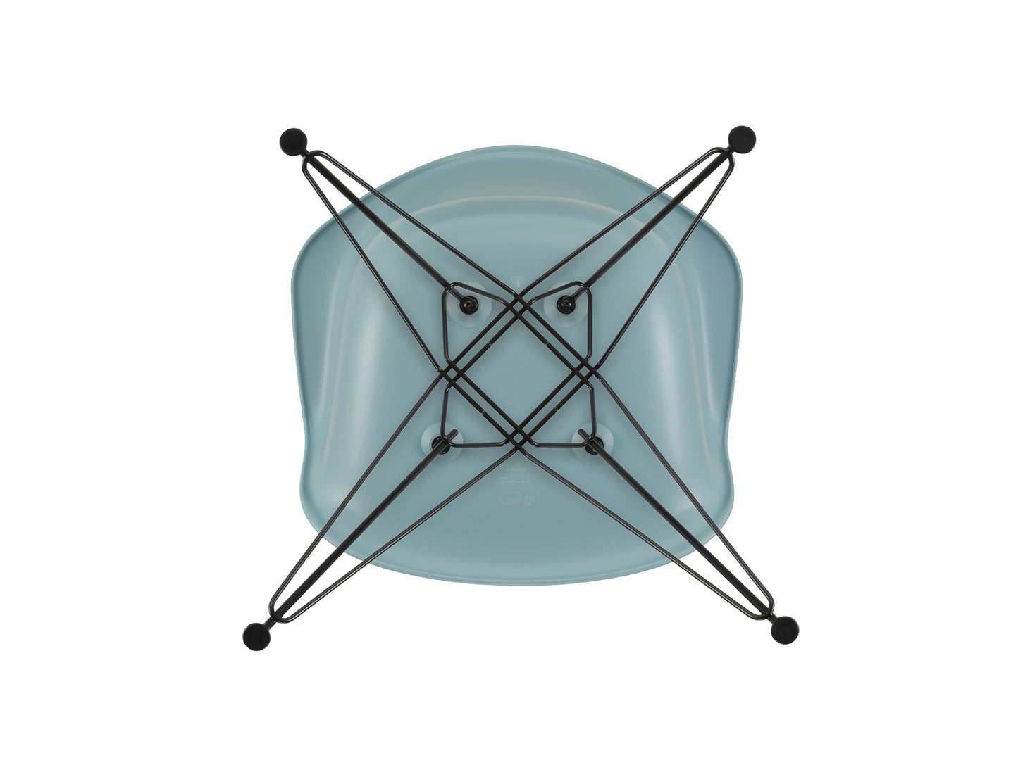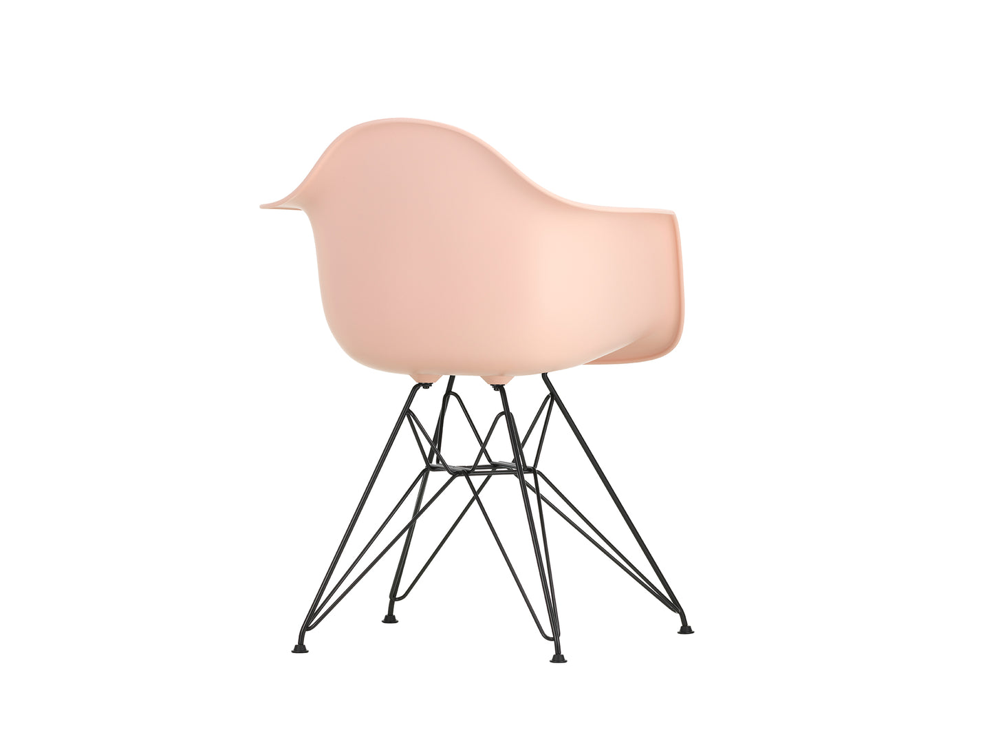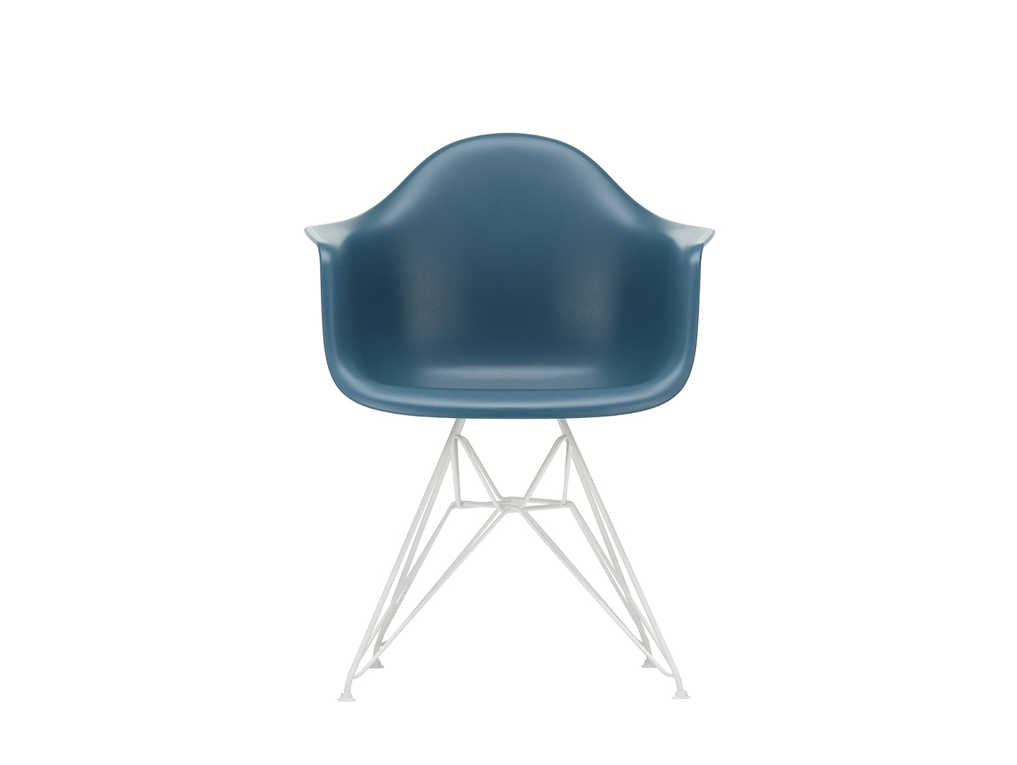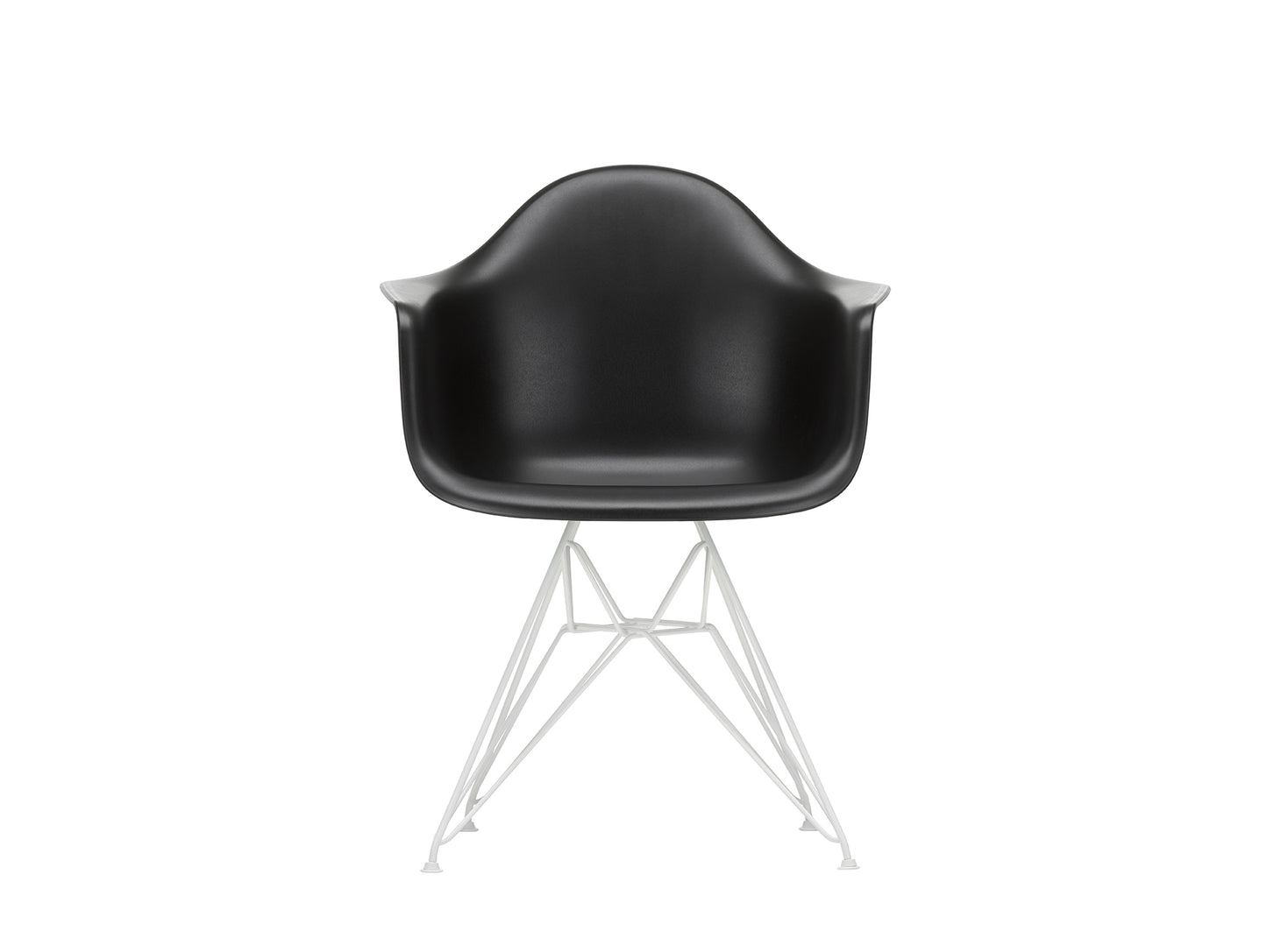 イームズ DAR プラスチック アームチェア RE は、クロームメッキの「エッフェル塔」スタイルの脚ベースを備えた、伝説的なグラスファイバー椅子の現代版です。これは、ニューヨーク近代美術館の低コスト家具デザイン コンペティションでゼニス プラスチックスと共同で製作されたもので、世界初の工業的に製造されたプラスチック製の椅子でした。