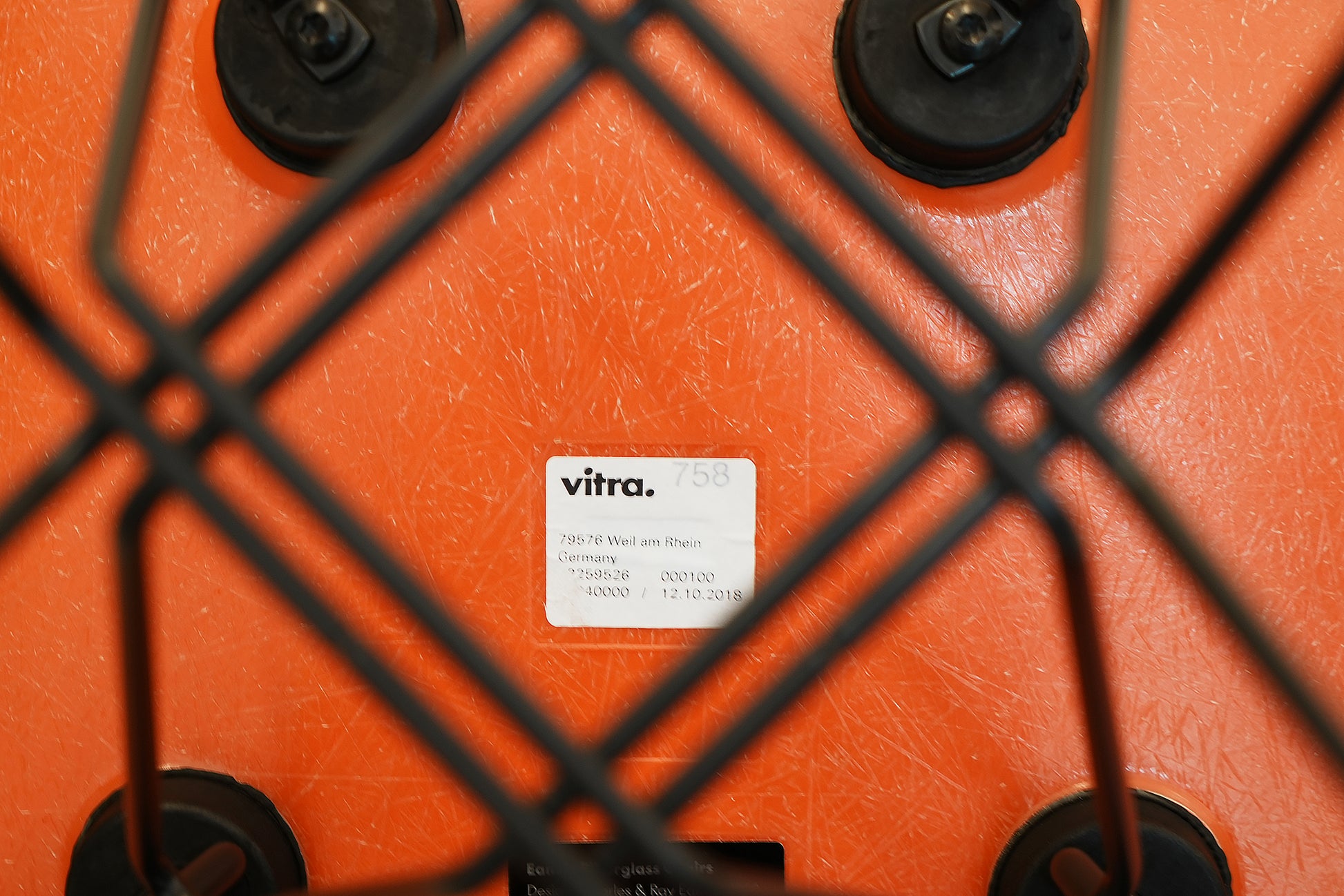 ヴィトラは、チャールズ&レイ・イームズによるグラスファイバーサイドチェアを6つのオリジナルカラーで製造しています。チャールズとレイは、色の使用を非常に重視しました。これまでグラスファイバーは無色のバージョンしか存在しなかったためです。その結果、彼らは工場で何日も費やし、無数のプロトタイプの色を混ぜ合わせて、アームレストの有無にかかわらず、両方のシェル形状の有機的な形状を最大限に強調する色を、調整された色合いの範囲で作成する努力をしました。イームズ夫妻が最初に開発した色は、グレージュ(グレーとベージュの混合)、象皮グレー(チャールズが「私が本当に欲しいのは、感情のある黒だ」と述べたときに言及していました)、そしてわずかに透明なトーンのパーチメントでした。生産の非常に初期の段階で、すぐ後に海の泡の緑、黄色、赤が続きました。