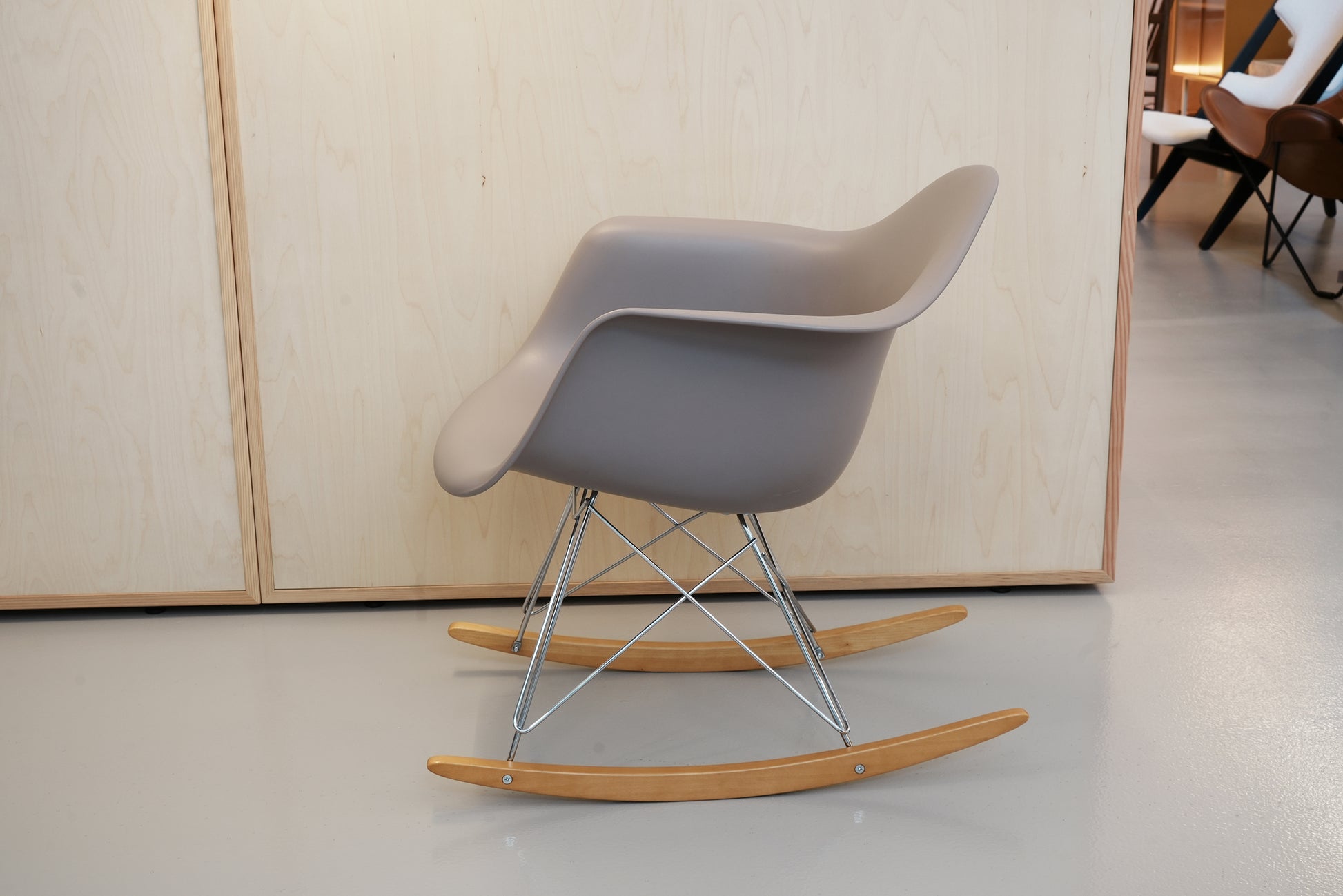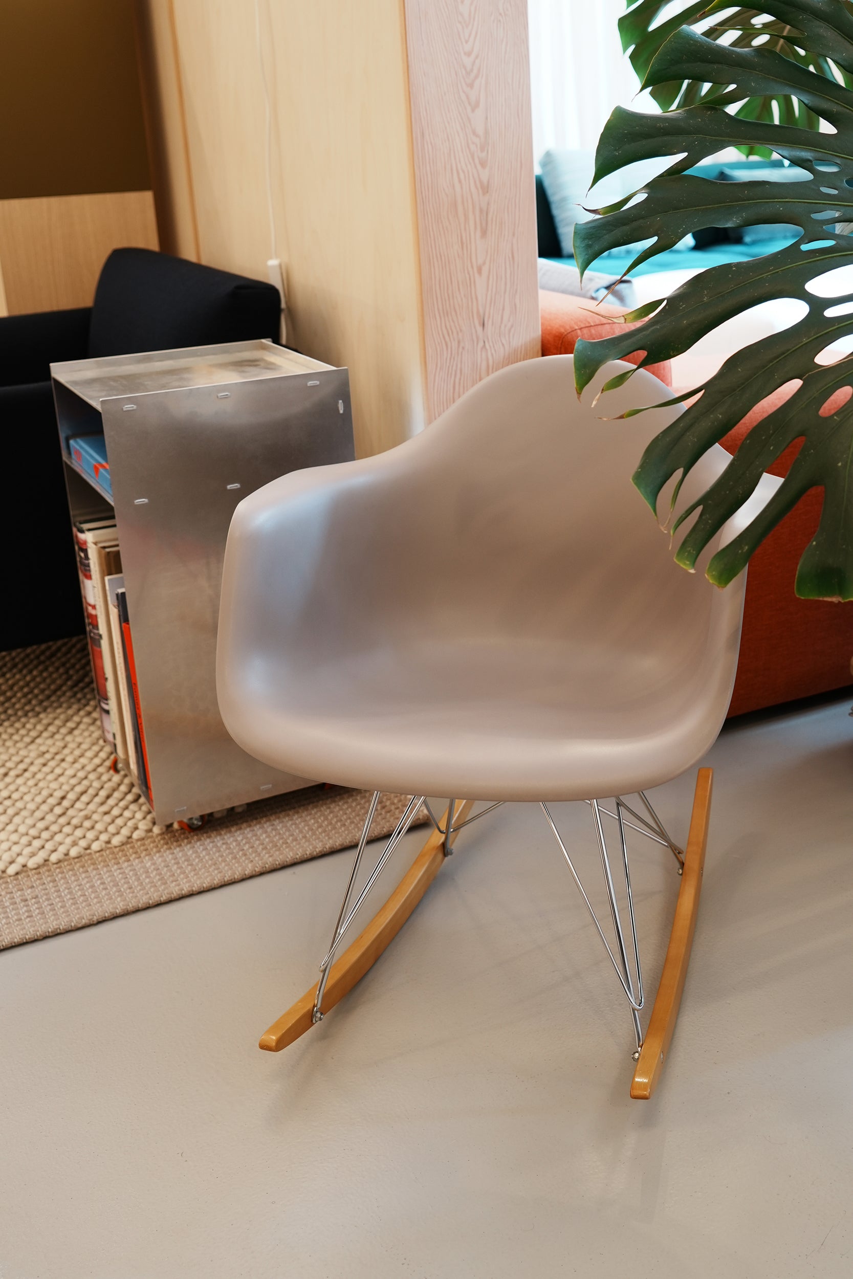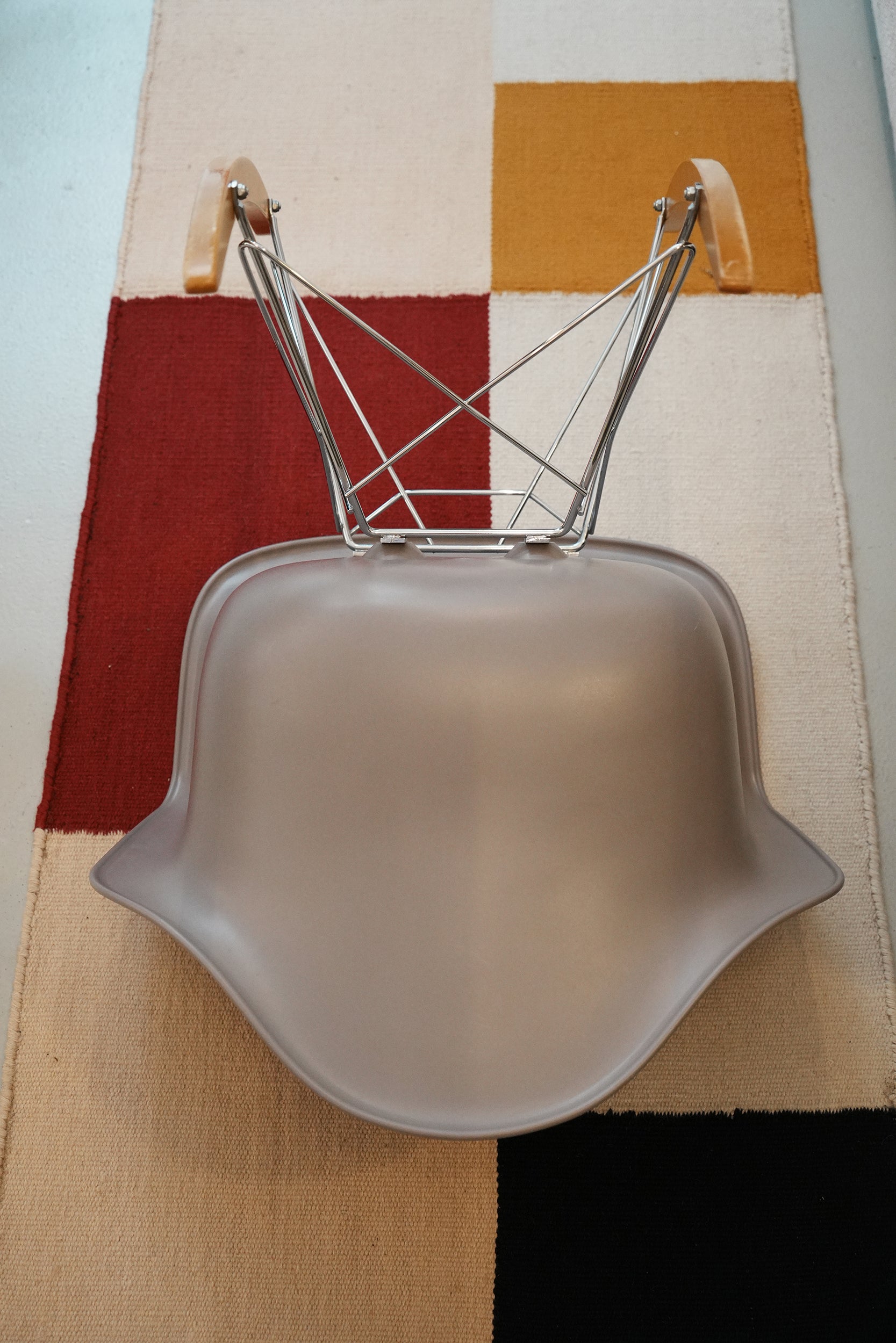グラスファイバー強化プラスチックで作られた有機的な形状のシートシェルは、後に RAR のメープルロッカーなど、さまざまな異なるベースと組み合わされました。最新バージョンでは再生ポリプロピレンを使用し、形状を若干変更することでさらに快適な座り心地を実現しました。 RAR はロッキング アームチェア ロッド ベースの略です。