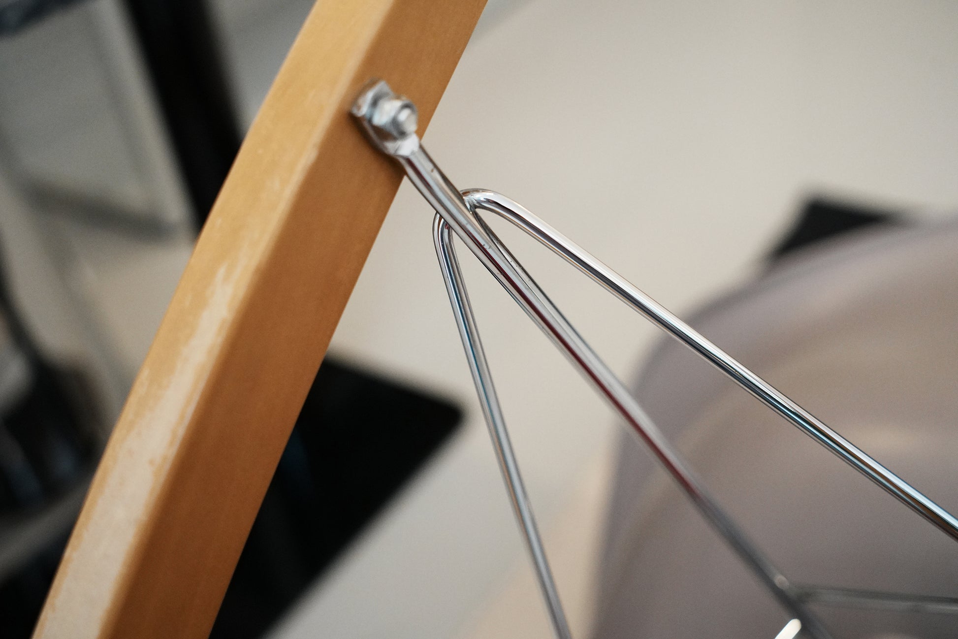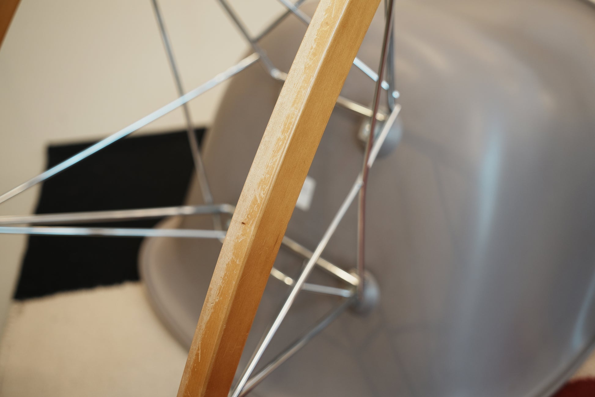 Base - Wire base with cross struts, chrome-plated or powder-coated finish, on solid maple runners. (RAR = Rocking Armchair Rod Base)