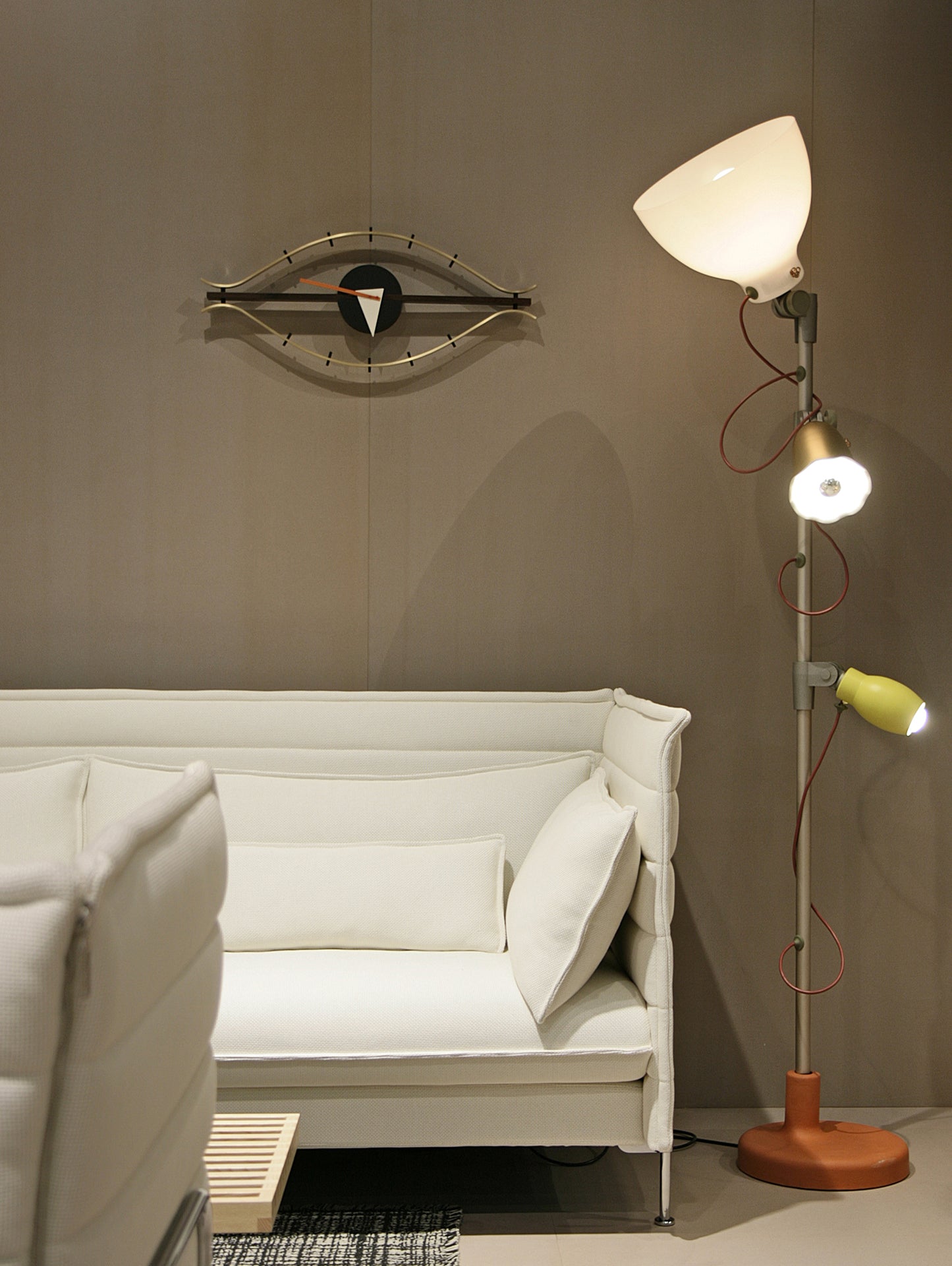 ジョージ ネルソンがヴィトラのためにデザインしたアイ ウォール クロックは、ジョージのウォール クロック コレクションの中で最も目を引く作品です ;) - 遊び心のある針が付いたクルミと真鍮で作られたアイ ウォール クロックは、何世代にもわたって長持ちするように作られており、独特の魅力をもたらします。どの部屋に置いても。
