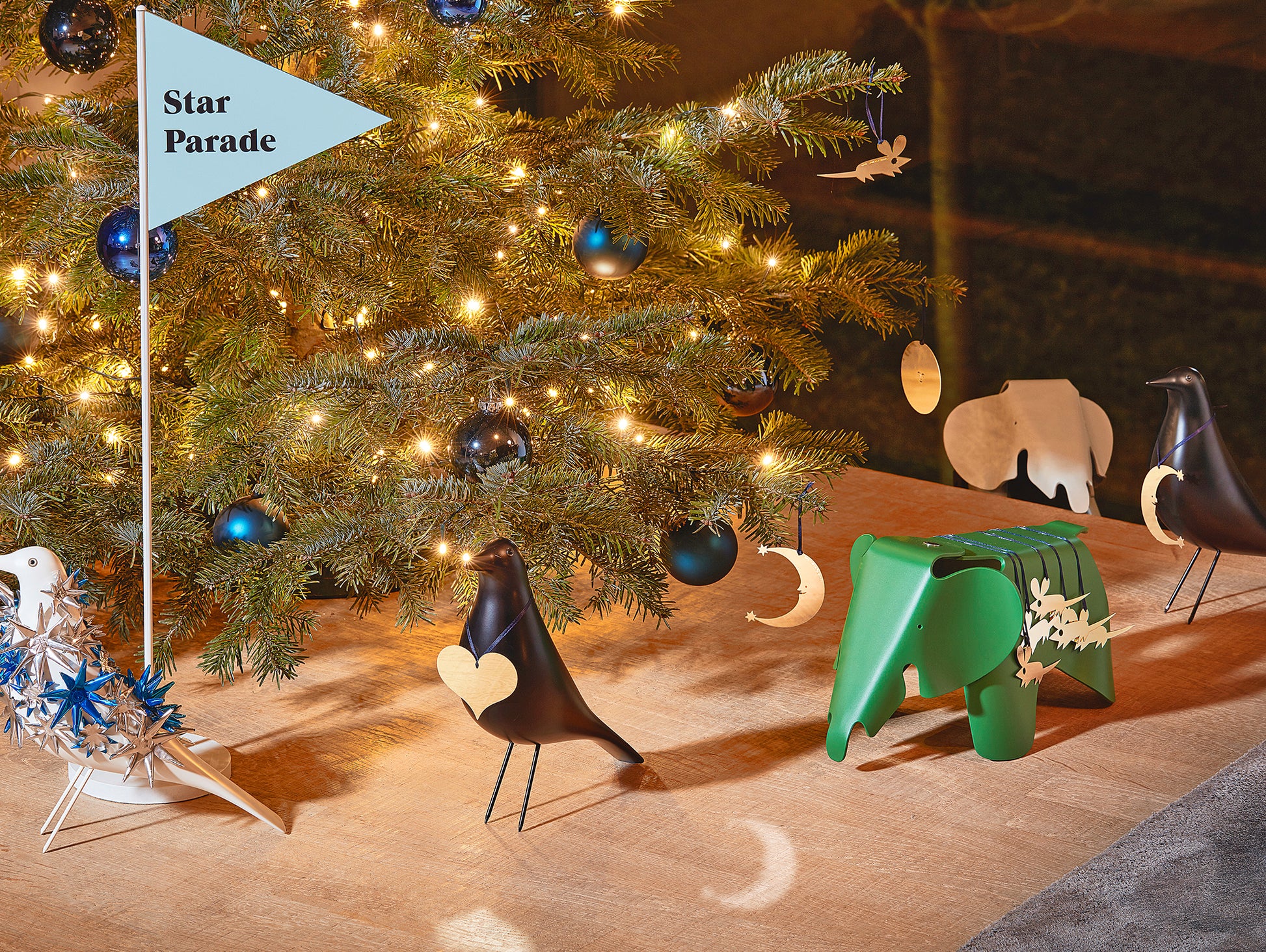 ジラールのオーナメントには、アレクサンダー ジラールが作成した膨大なイメージの中からヴィトラが選んだ、さまざまな特徴的なモチーフがあります。ハート、太陽、月、鳩、ウサギ、星、ネズミは、真鍮磨き仕上げの金属から製造された装飾的なペンダントです。