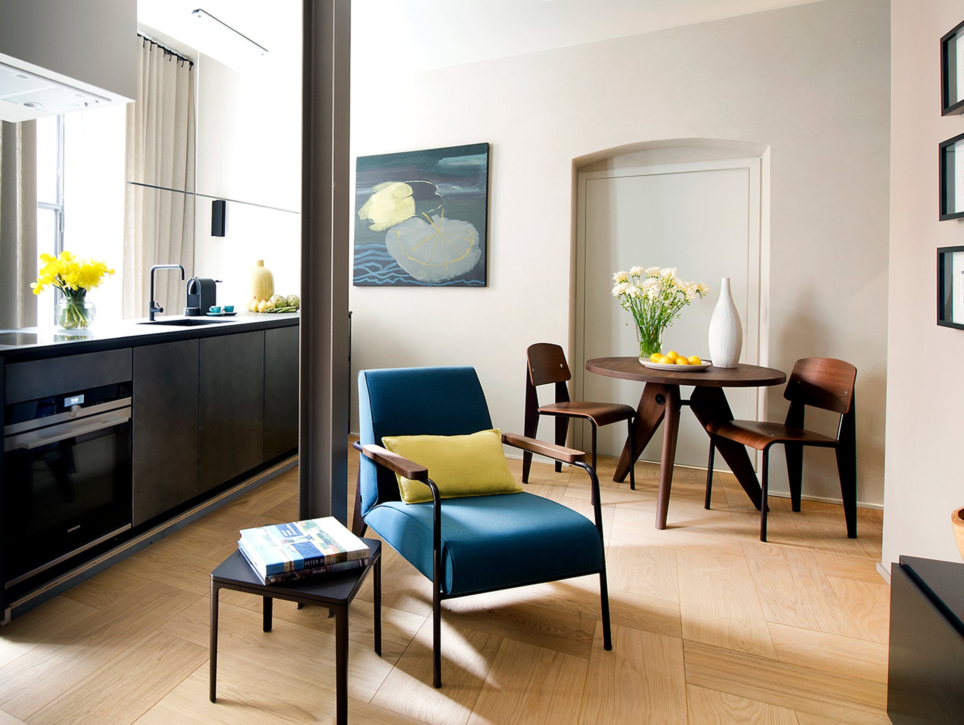 1944 年にジャン プルーヴェによってデザインされたゲリドン シリーズは、プルーヴェの初期の家具デザインの 1 つです。 1940 年代初頭、第二次世界大戦中の金属不足のため、ジャン プルーヴェはより広範囲に木材を扱うようになりました。オーク無垢材またはアメリカンウォールナットのテーブルトップで作られ、プルーヴが付属しています é の特徴である同じ木材を曲げた板金構造の湾曲した脚を備えた Gueridon テーブルは、頑丈で耐久性のある家具です。主に木造で構成されているにもかかわらず、中心要素であるスチール製の構造結合材が、デザインを紛れもなくプルーヴェのものにしています。その結果、家庭環境に最適な、より柔らかなテーブルが誕生しました。
