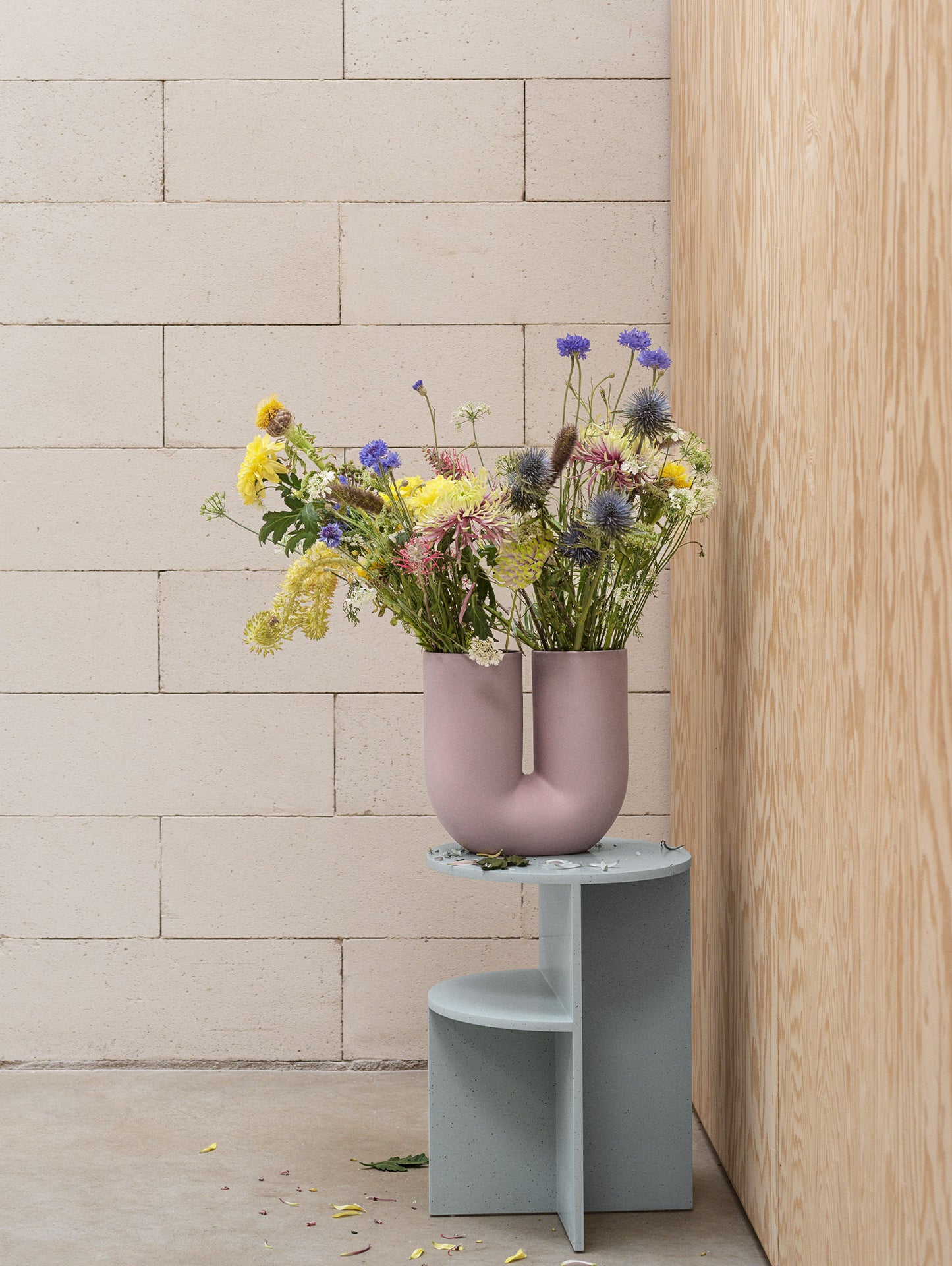 Muuto Kink Vase は、伝統的な職人技と遊び心のあるデザイン言語の組み合わせによって、典型的な花瓶に現代的なフォルムをもたらします。花瓶の特徴的なねじれは、フラワーアレンジメントに一方または両方のチューブを使用できるため、デザインに彫刻的な表現を与えています。