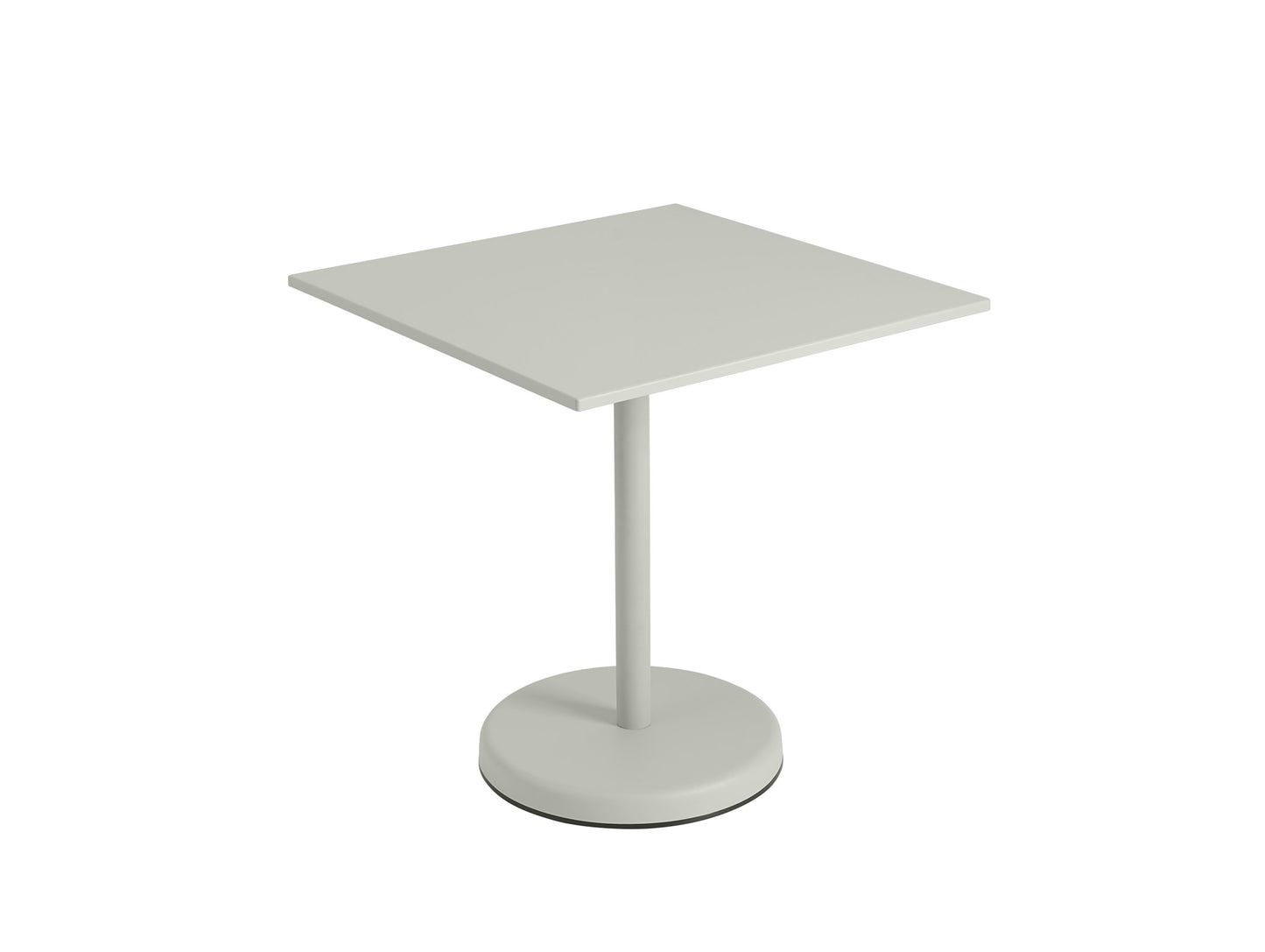 堅牢な溶融亜鉛メッキのトップは 4 色のオプションで塗装され、重量のあるステムとベースに接続されています。リニアスチールサイドチェア/アームチェア、またはその他のアウトドアチェアと組み合わせてください。ミニマルなフォルムにより、テーブルはさまざまなシーンで活躍します。