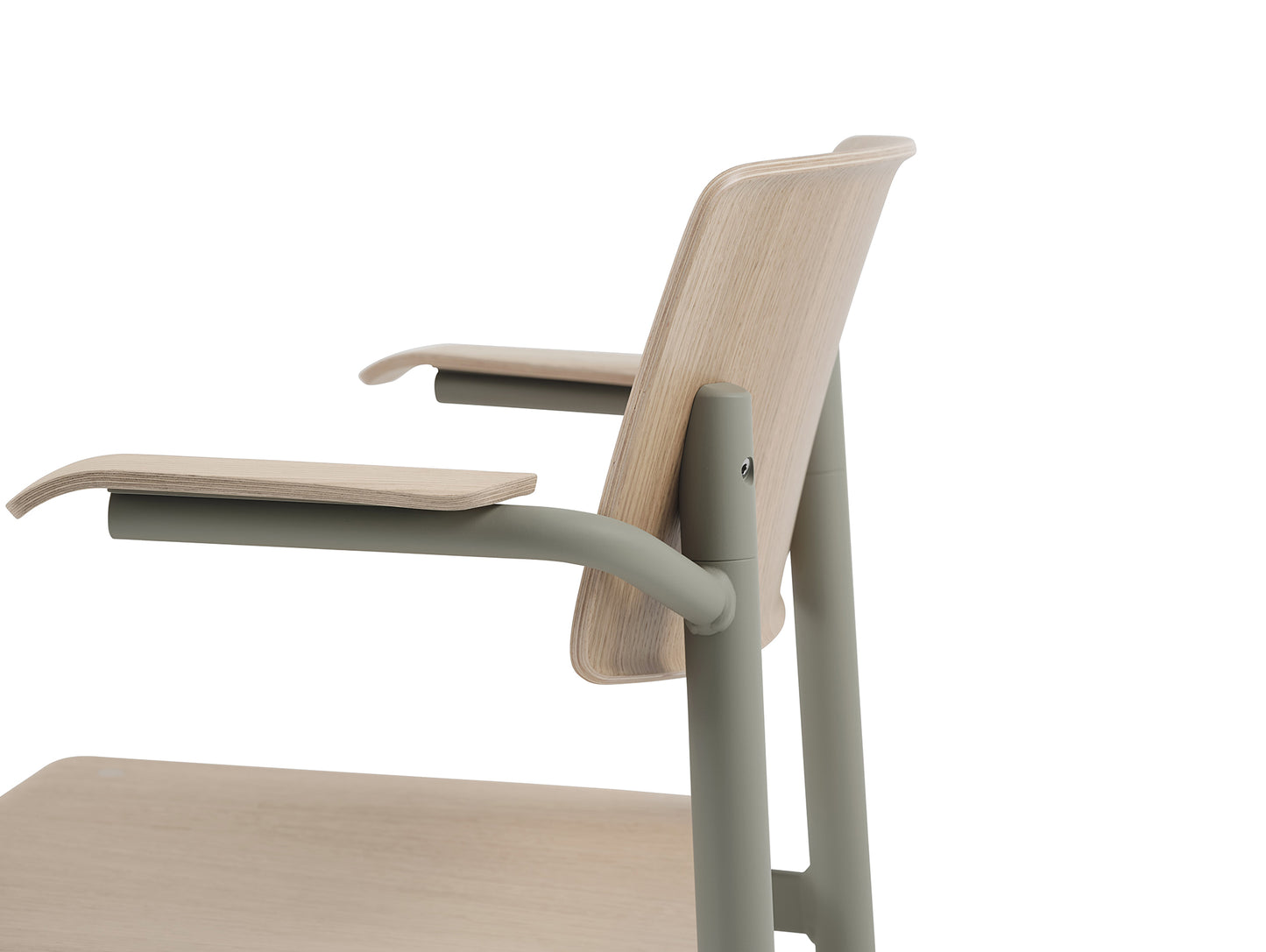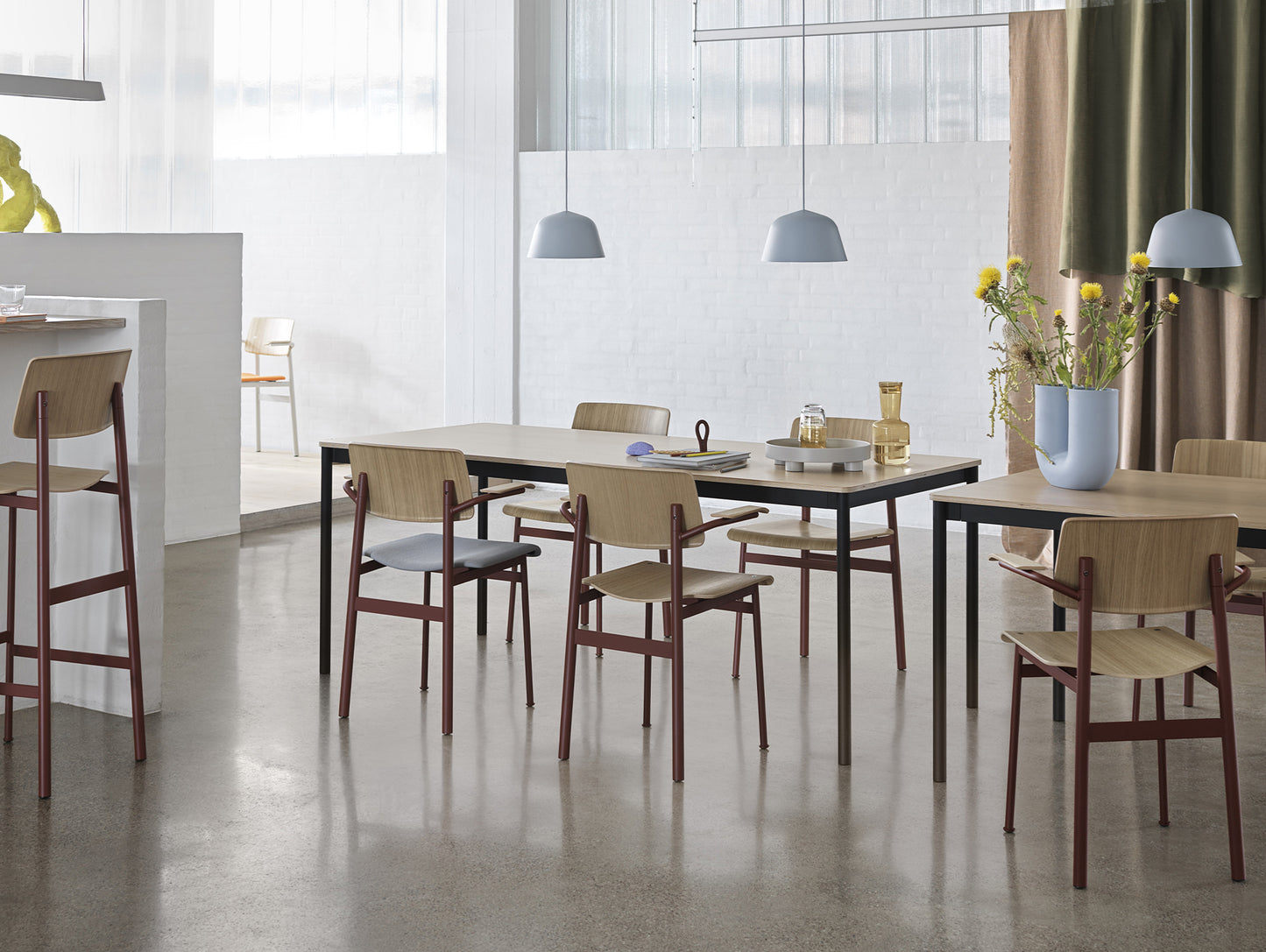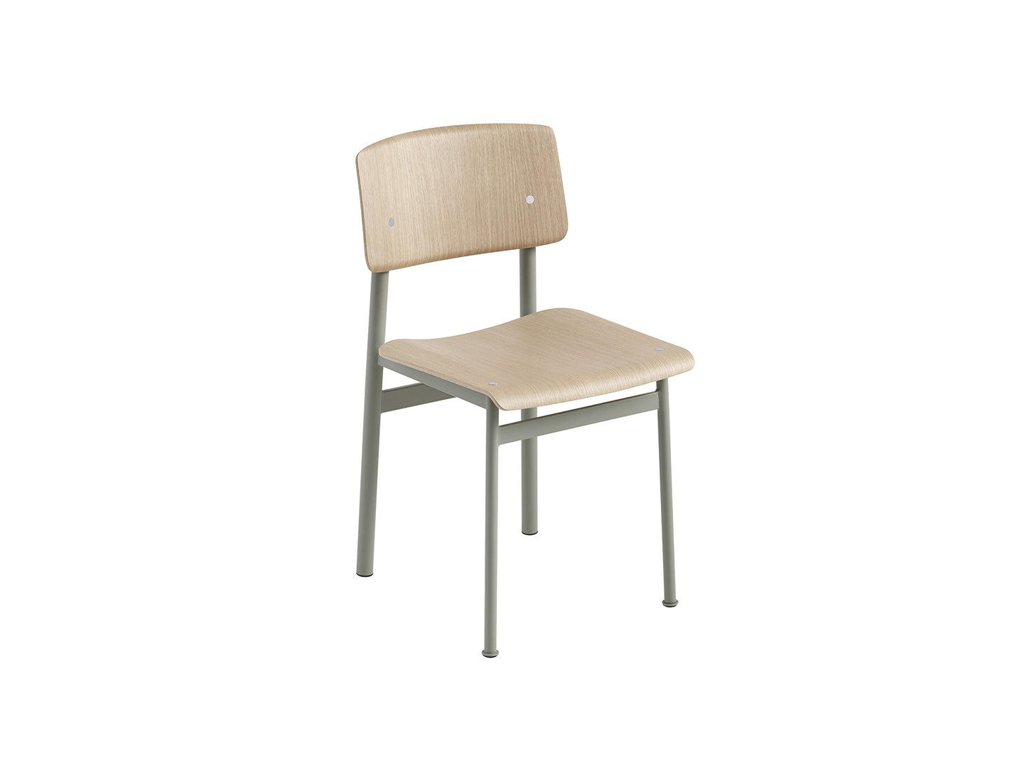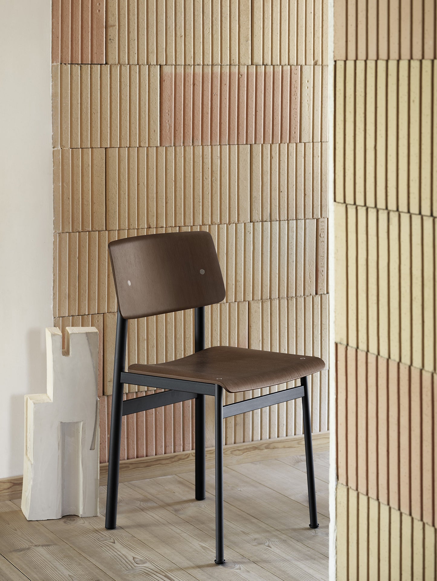 トーマス・ベンツェンが Muuto のためにデザインしたロフトチェアは、正直なスカンジナビアデザインと工業的な魅力を兼ね備えています。水性ラッカー仕上げのオーク材突き板から合板ブナ芯シートと粉体塗装されたスチールフレームで作られています。成形された座面と背もたれは人間の輪郭に合わせてカーブしており、座ったときに最大限の快適さを実現します。