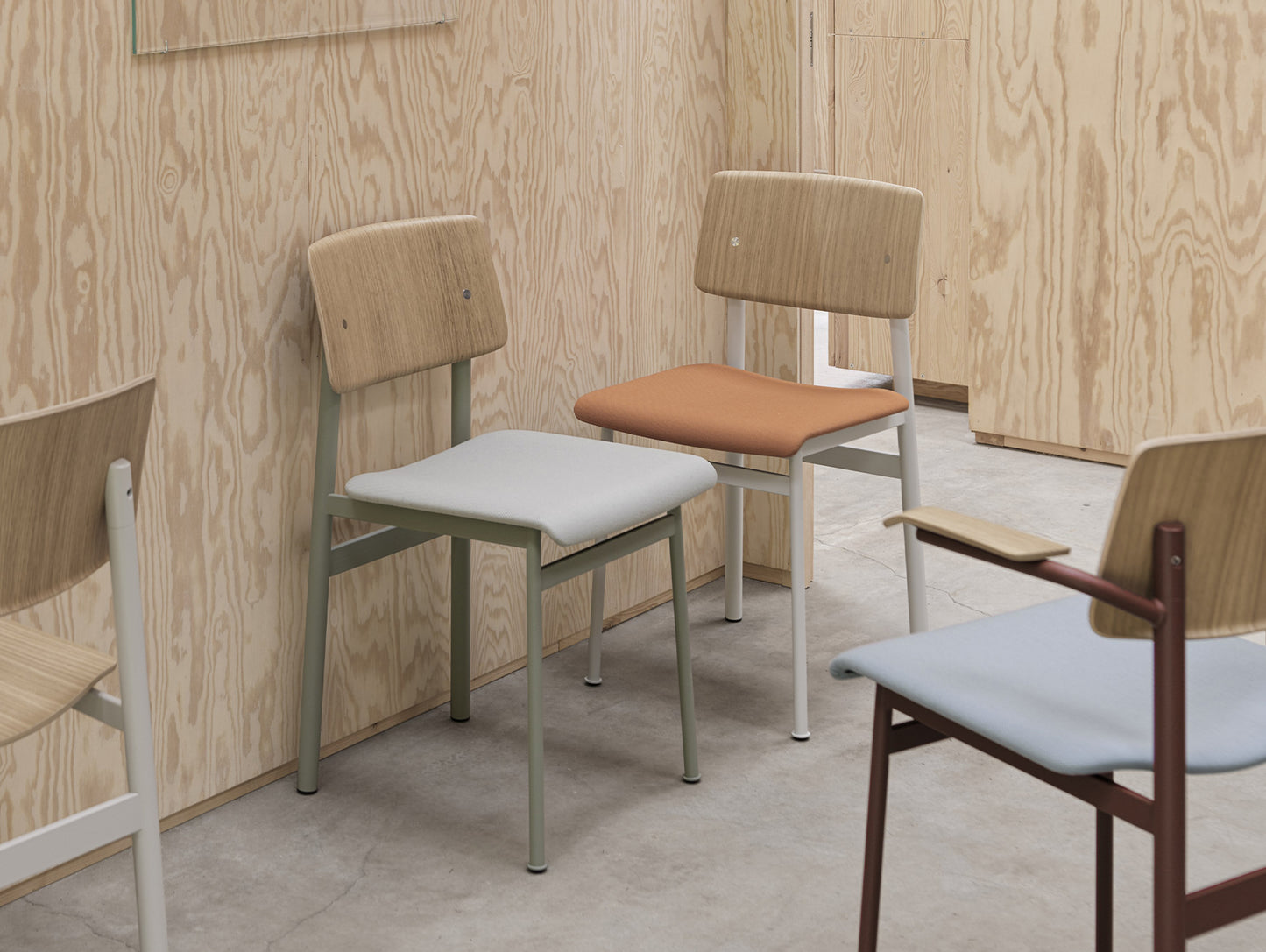 トーマス・ベンツェンが Muuto のためにデザインしたロフトチェア布張りは、正直なスカンジナビアのデザインと工業的な魅力を組み合わせています。ロフトは、水性ラッカー仕上げのオーク材突き板の背面と合板とフォームの布張りの座面、粉体塗装されたスチールフレームで作られています。成形された座面と背もたれは人間の輪郭に合わせてカーブしており、座ったときに最大限の快適さを実現します。