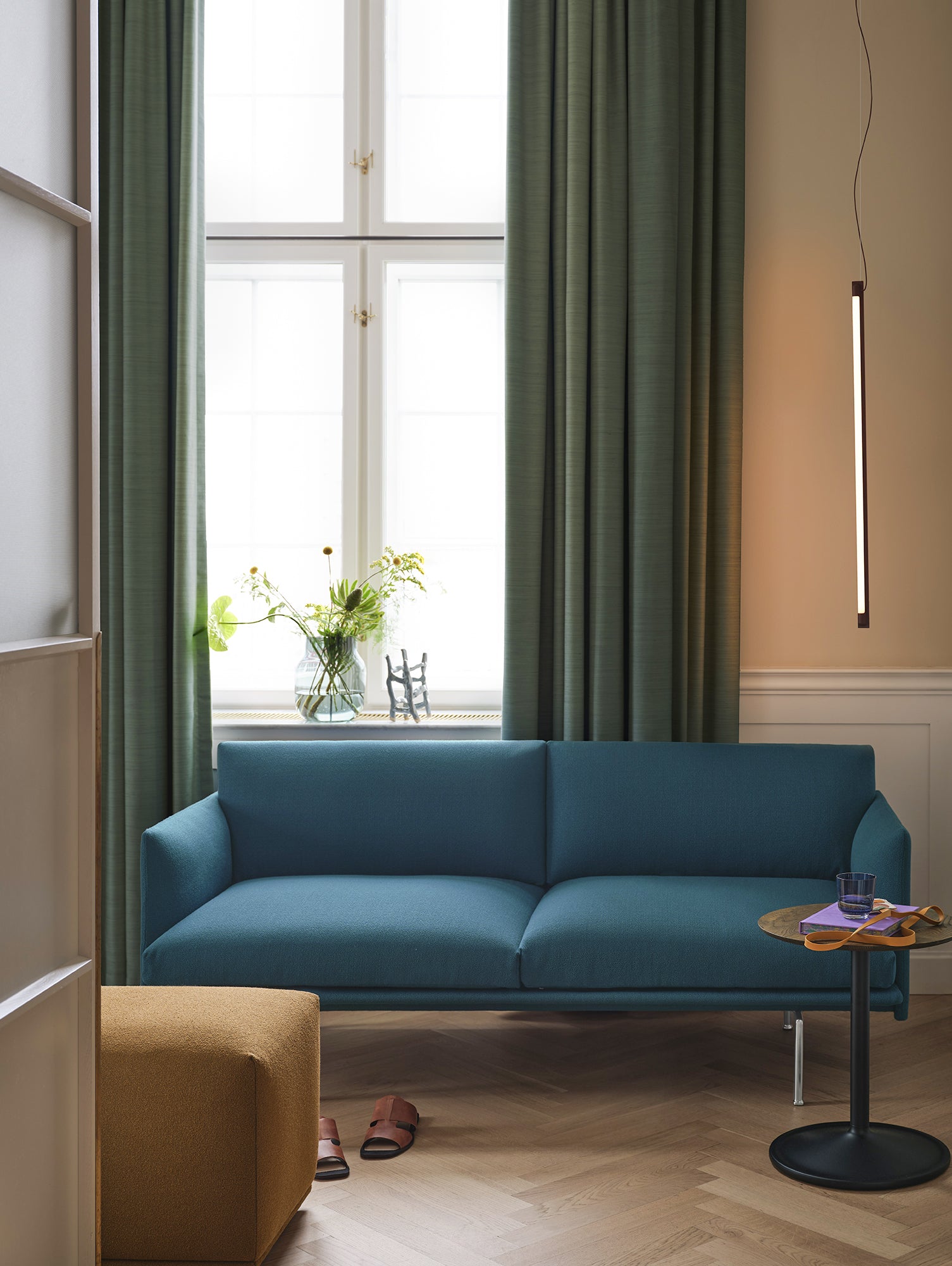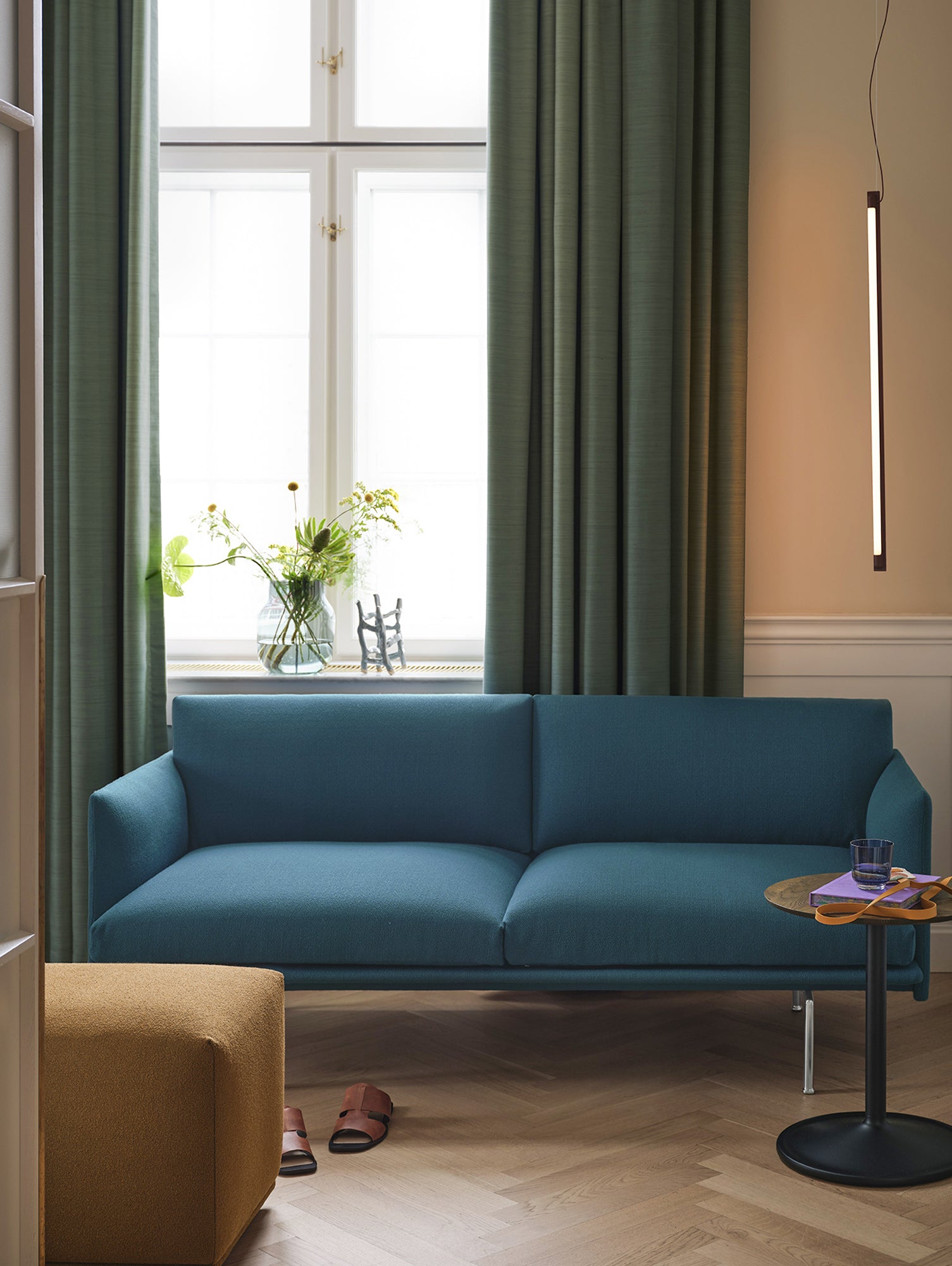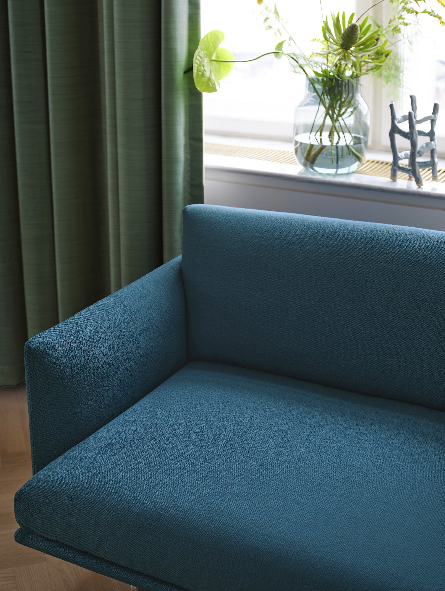 Muuto のアウトライン スタジオ ソファは、オリジナルのアウトライン ソファの縮小版で、都市の小さな住宅向けに作られています。ミッドセンチュリー家具の洗練されたすっきりとしたラインを参考にしていますが、ゆったりとしたモダンなサイズと高い快適性を備えた最新のデザインを実現しています。スリムな肘掛けとスリムな背もたれにより、座るスペースを最大限に確保し、2人で快適に座ることができます。