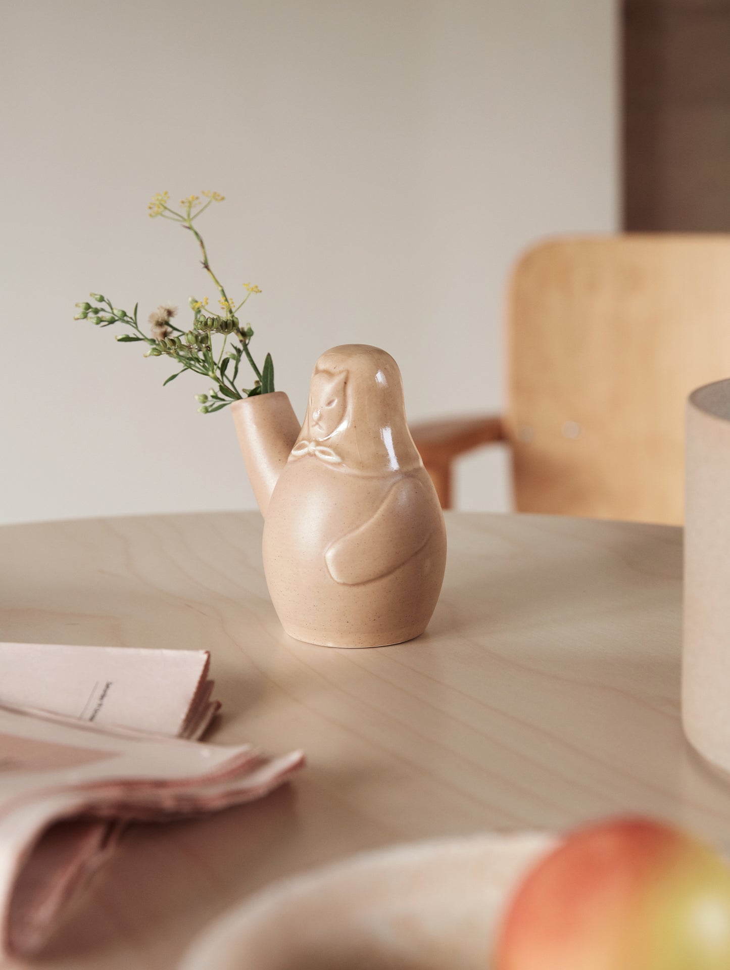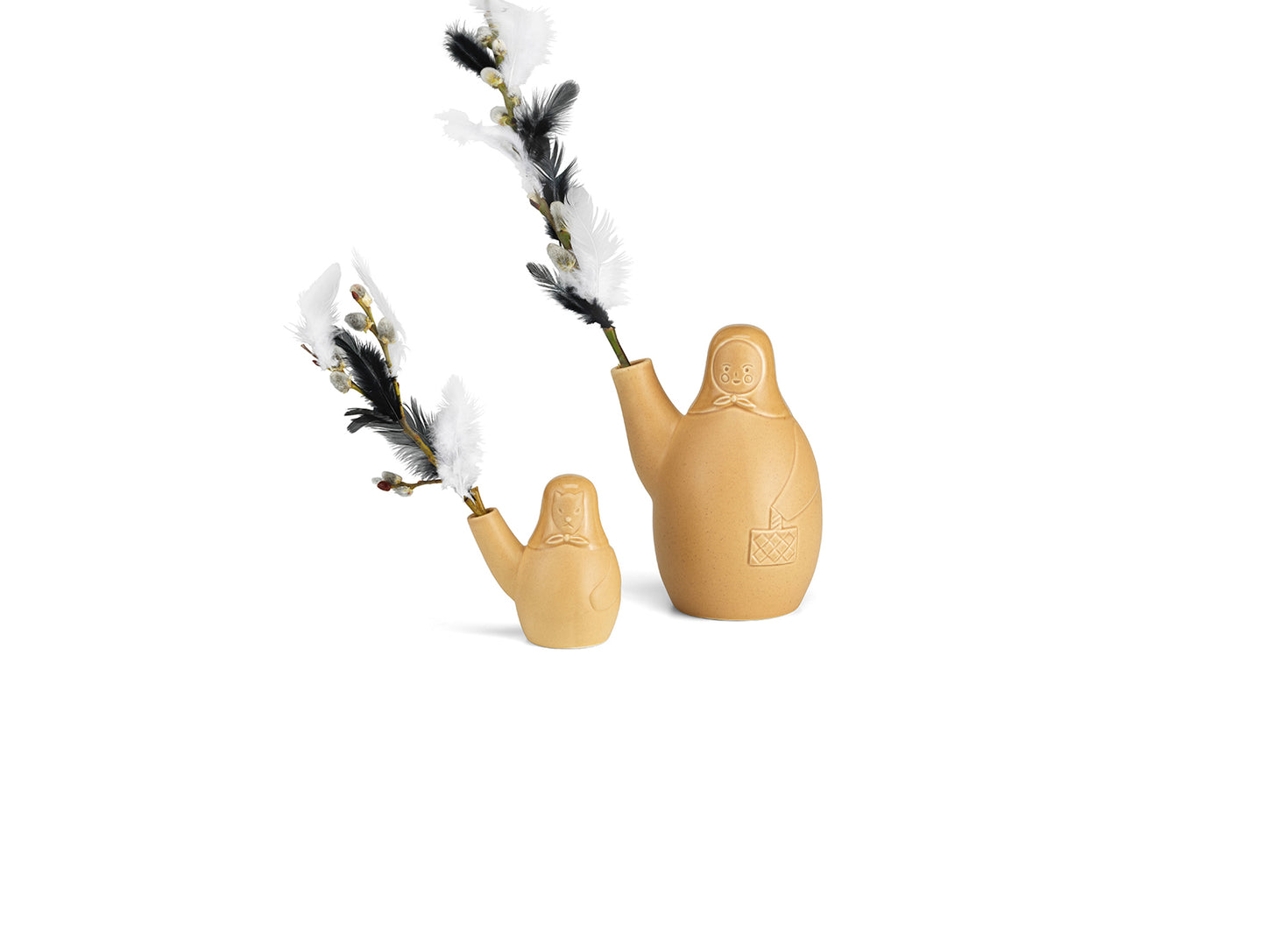 活発な機能を備えた一連の陶器は、フィンランドのお祭りと信仰を祝います。フィンランドの民間伝承によると、4月になるとフィンランドの子供たちは魔女の仮装をし、柳の小枝に羽や小さな装飾品を飾り、冬の終わりを迎えます。小さな魔女たちは家々を訪問し、祝福のお返しにささやかなご褒美を期待しています。イースター犬の花瓶は、イースター魔女の花瓶の忠実な友達です。