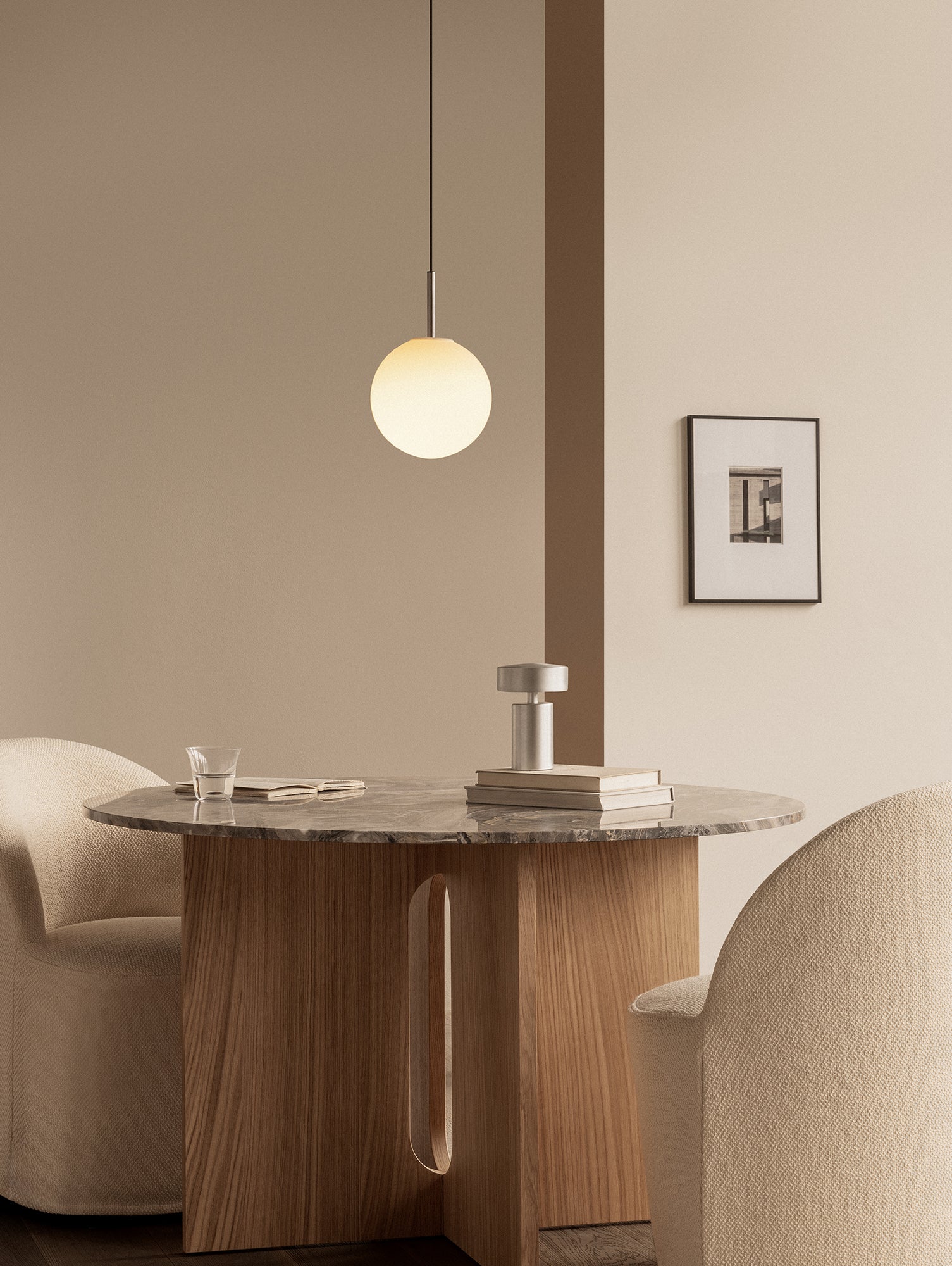 Audo Copenhagen の TR ペンダント ライトは、 TR 電球を利用した (およびそれを含む) 最小限の照明器具です。 TR シリーズは、現代の都市生活のための賢いソリューションです。複雑な新しい照明器具のデザインに焦点を当てるのではなく、このシリーズはすべて、シンプルなオパール ガラス球、つまり電球自体を中心に構築されています。 TR 電球は調光可能な LED 光源です。エレガントな球形のフォルムがランプ器具を隠し、オパールガラスのディフューザーが均一で調和のとれた温かみのある光を生み出し、まぶしさを防ぎます。