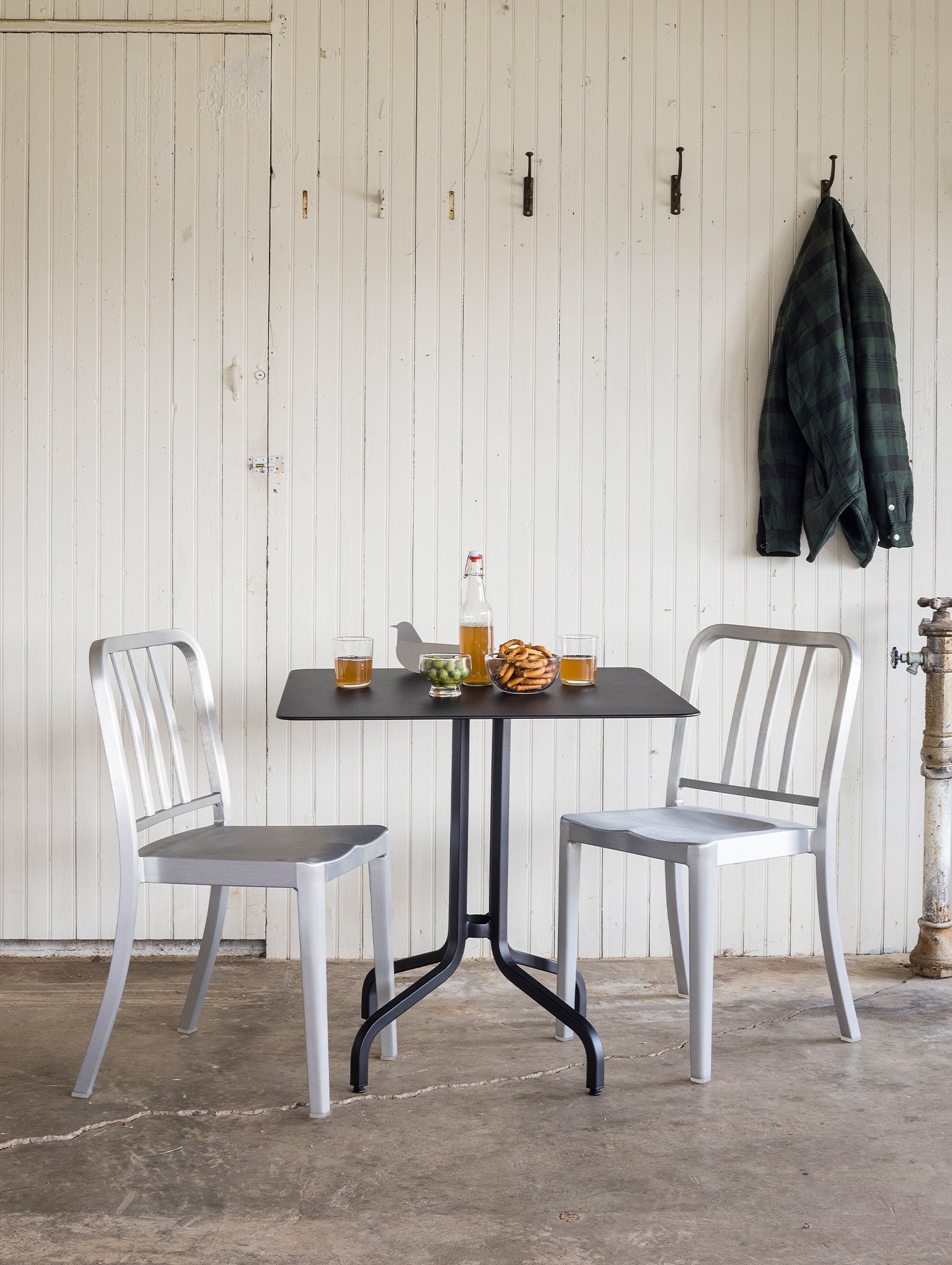 Unlike any other furniture made of steel or iron, the Navy Chair cannot rust, it's non-magnetic, anti-bacterial and ages gracefully. The Navy Chair is a robust and durable chair for both indoor and outdoor settings. The original Navy Chair is easily recognised by the official Emeco stamp at the back of the seat.
