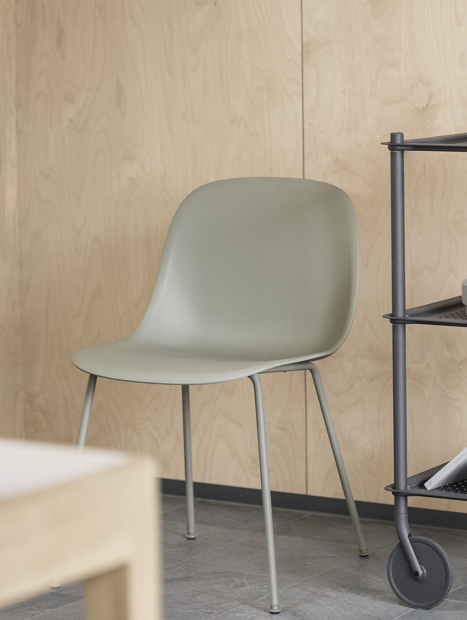 The Fiber Side Chair is made from an innovative wood fibre composite with up to 25% pine wood fibres for a tactile expression and matte touch, joined by the Scandinavian touch of a lightweight tube base. At the end of its life, this product can be easily disassembled, supporting circularity. All non-upholstered versions of this product are marked with recycling 5, meaning that is 100% recyclable to be used in future production and thus lowering material waste.