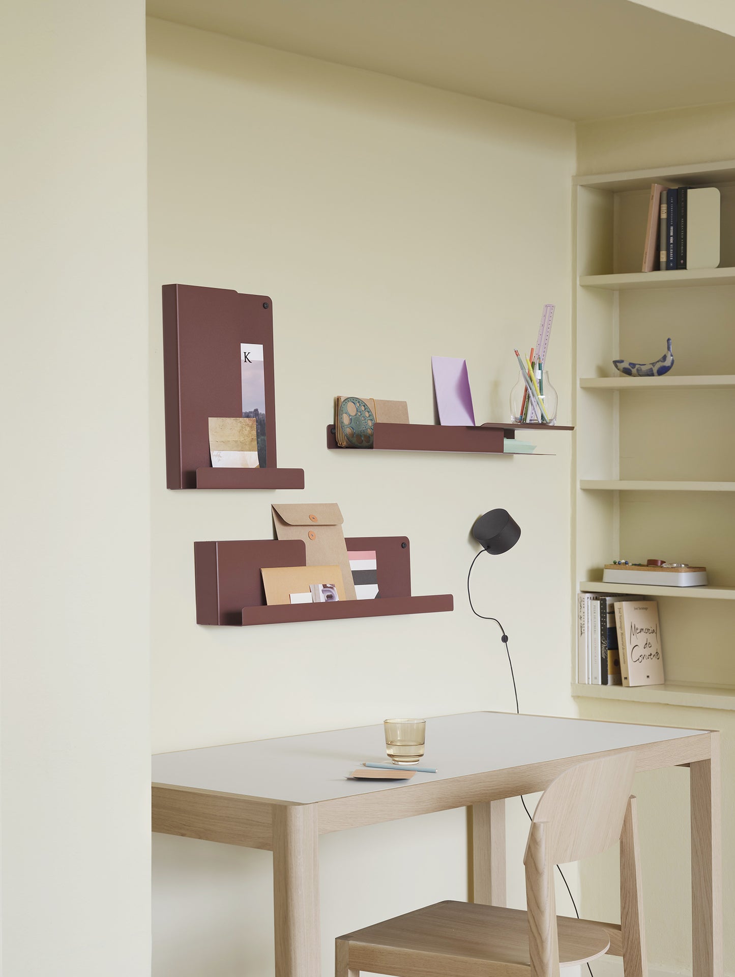 These are very pretty shelves... They make me very happy indeed. I love the simplicity of the concept, and the way it has been executed. The proportions of the elements are perfect, they are beautiful objects in their own right, the fact that you can store stuff in them is a bonus! Beautifully manufactured, and finished, the shelves have a real weight and solidity to them. The finish is lovely, a slightly textured matt coating. Just great to have something to stick all those random bits of paper behind. We went for the large and medium... they’re a little bigger than they look in the images! Very highly recommended! :)