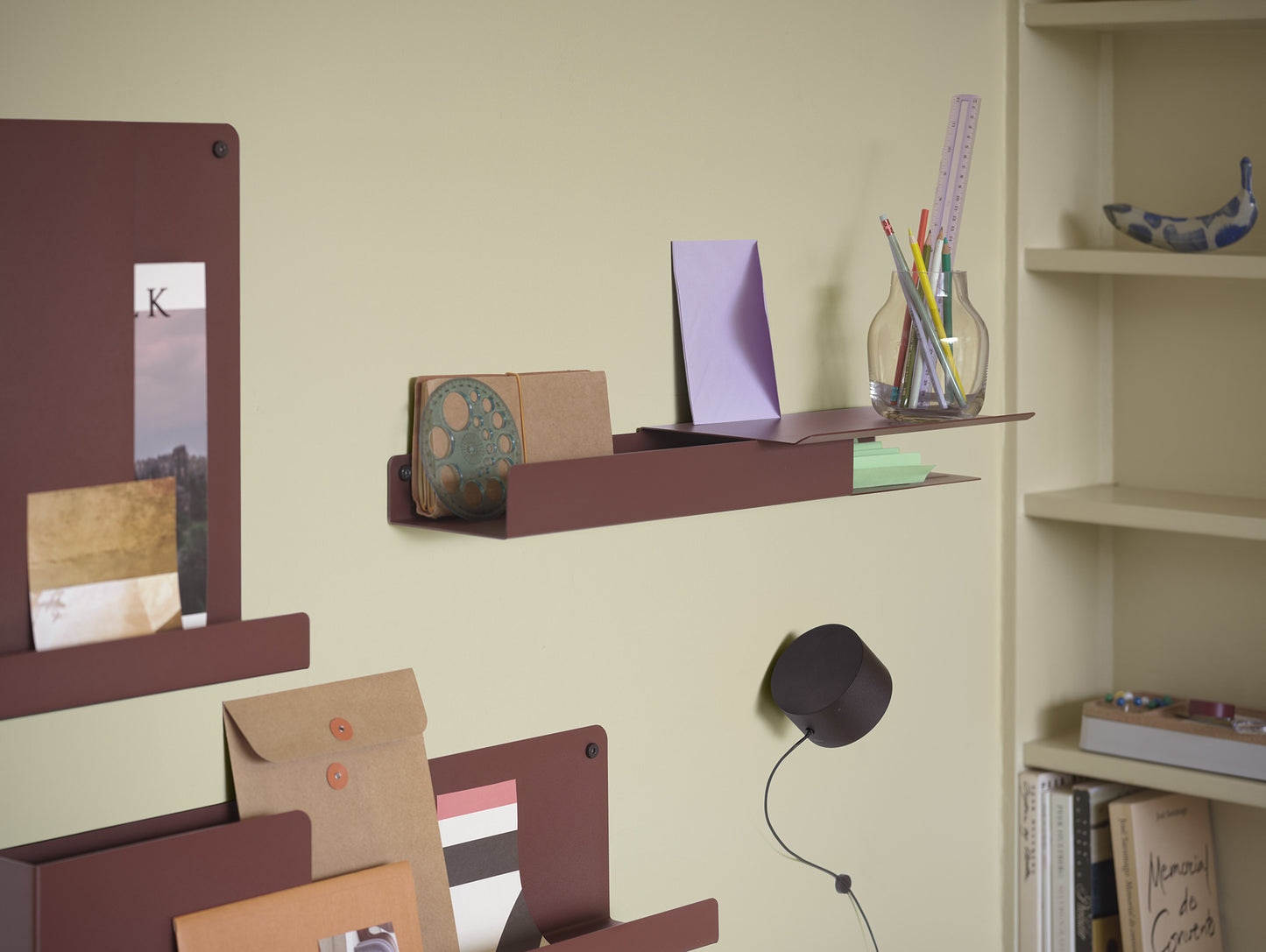 Johan Van Hengel on the Design "Inspired by the shadow-play of layers, 'Folded' is based on a seemingly simple bending technique of a single sheet of metal to create pockets which hold and separate your items. Featuring a subtle bolt and hooks for hanging objects, it is a versatile wall mount that can be used in both a practical and a decorative manner - suitable for organising anything from mail to books, perfumes or spices, or just displaying your favourite belongings".