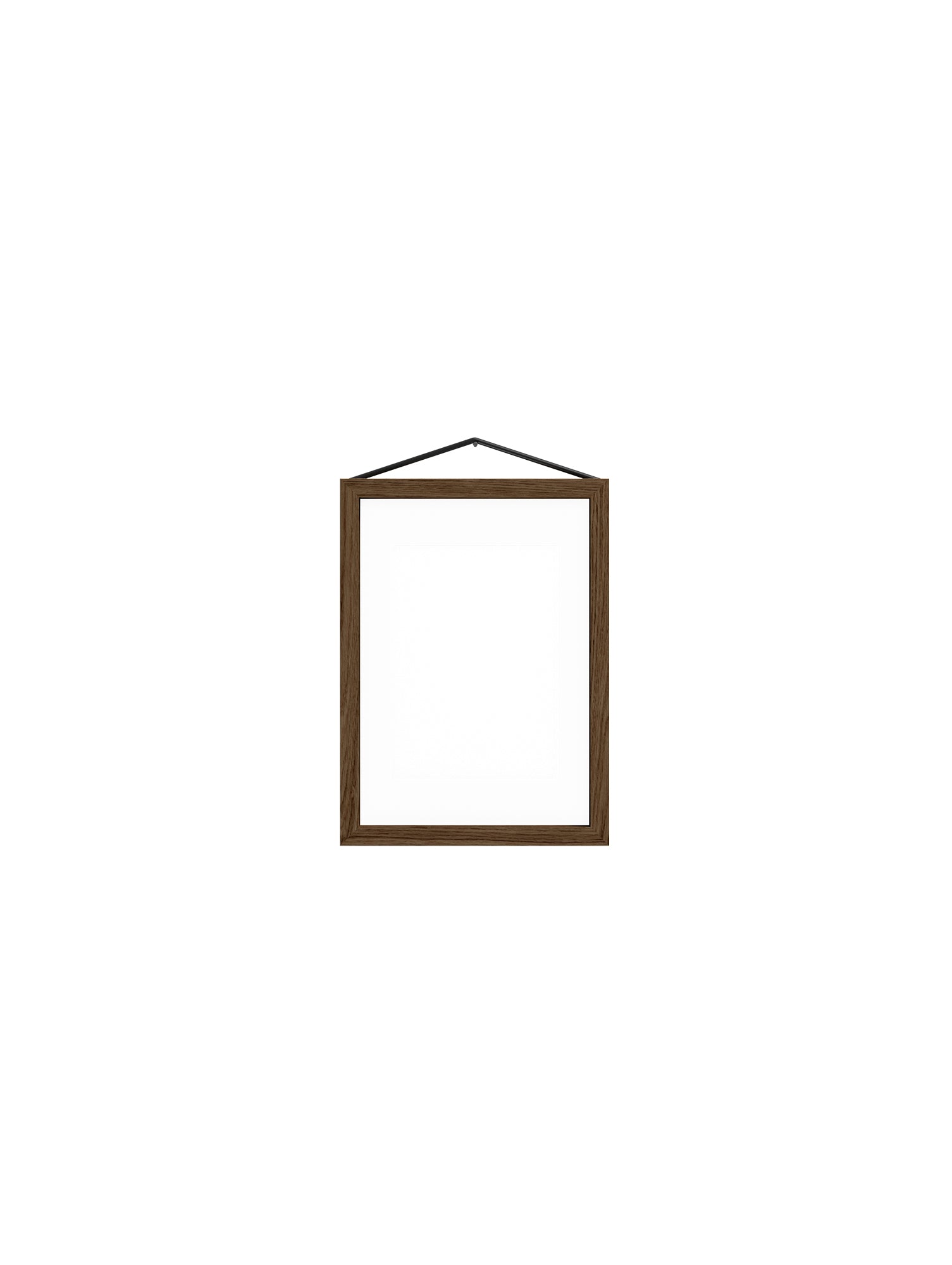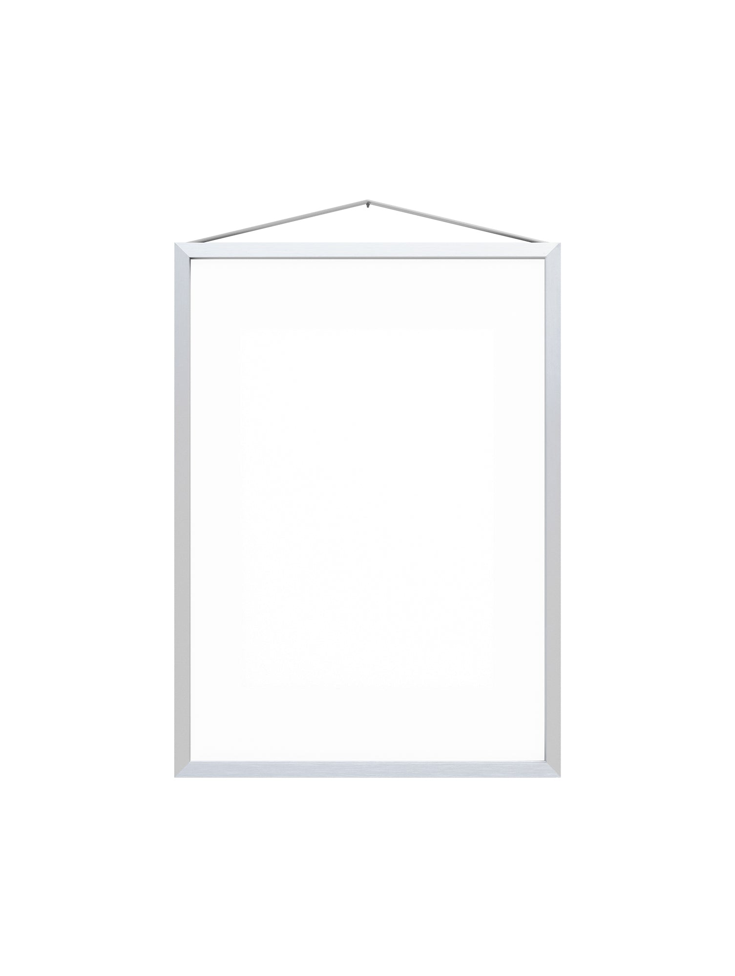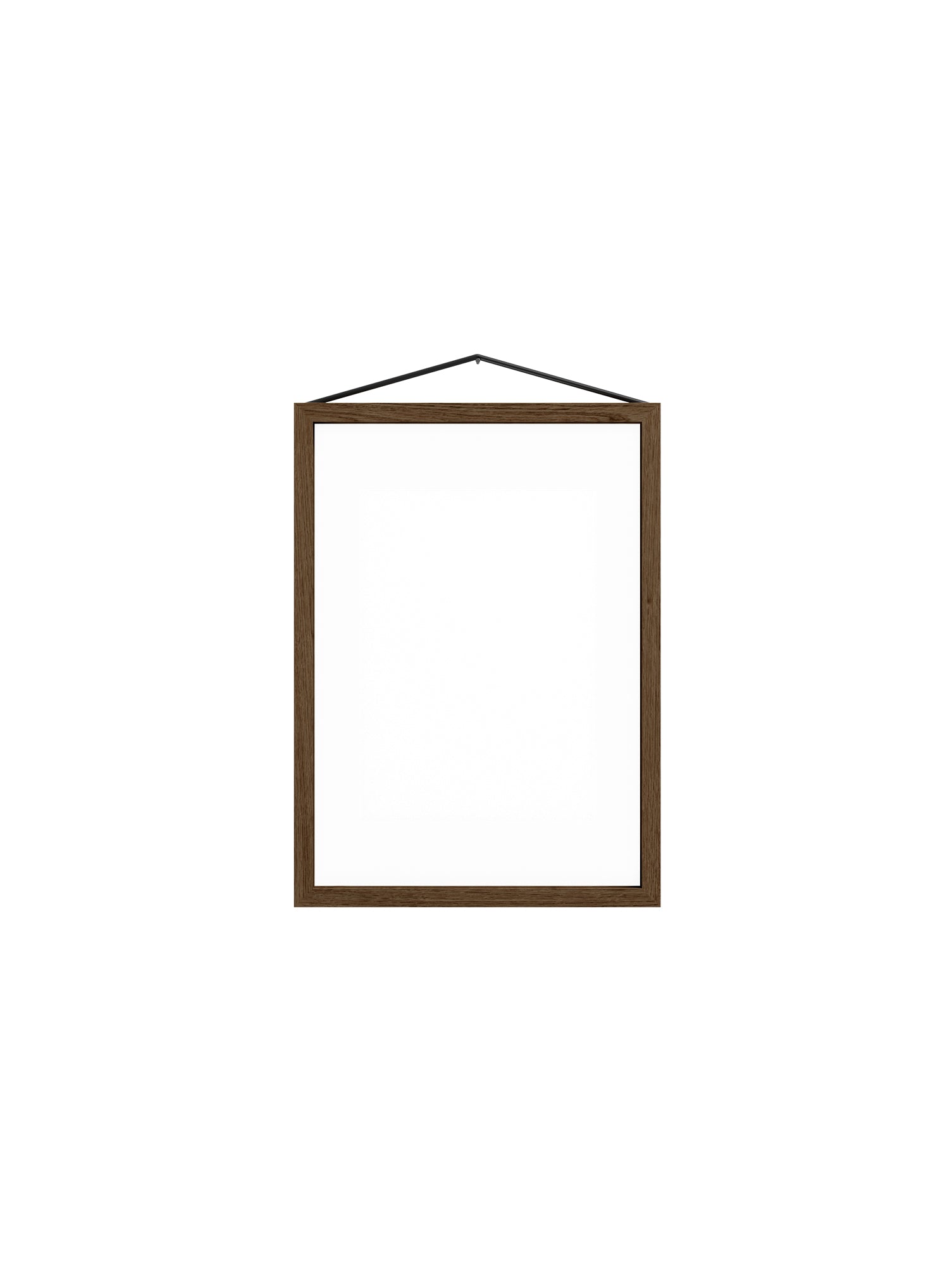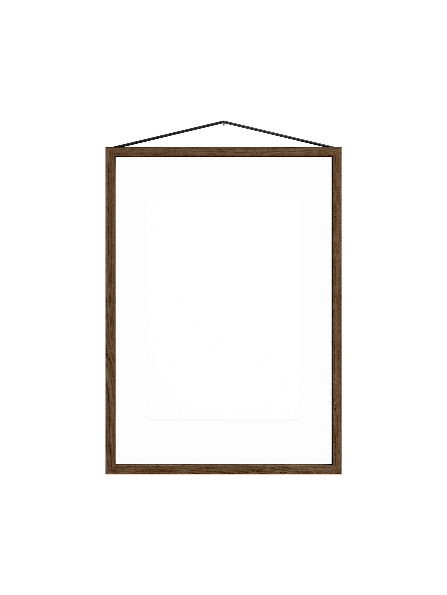 Frame consists of two pieces of acrylic glass, four pieces of solid oak timber or painted aluminium and a silicone rubber band. The rubber band both holds the frame together and also serves for hanging the frame on your wall if desired. Available in four sizes: A5, A4, A3 and A2.