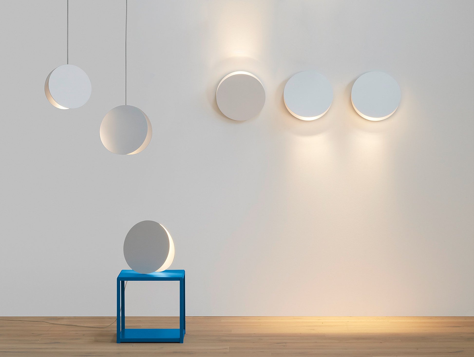 Generating an intriguing display of light and form, North is a sculptural floor and table light with distinct underlying simplicity. Reduced to a core circular shape, the light playfully refers to abstract geometry or lunar phases, changing its appearance depending on the viewer's perspective.