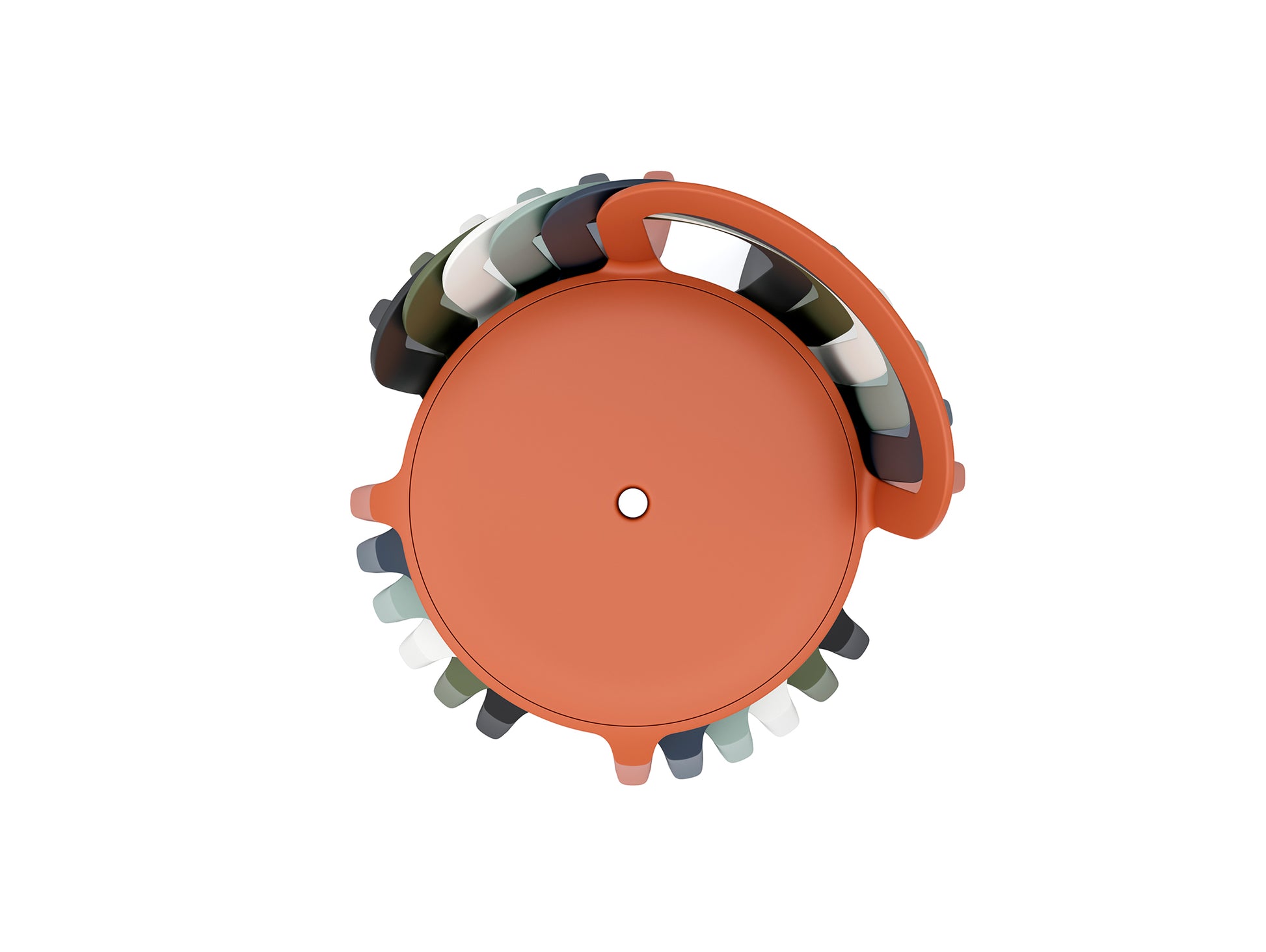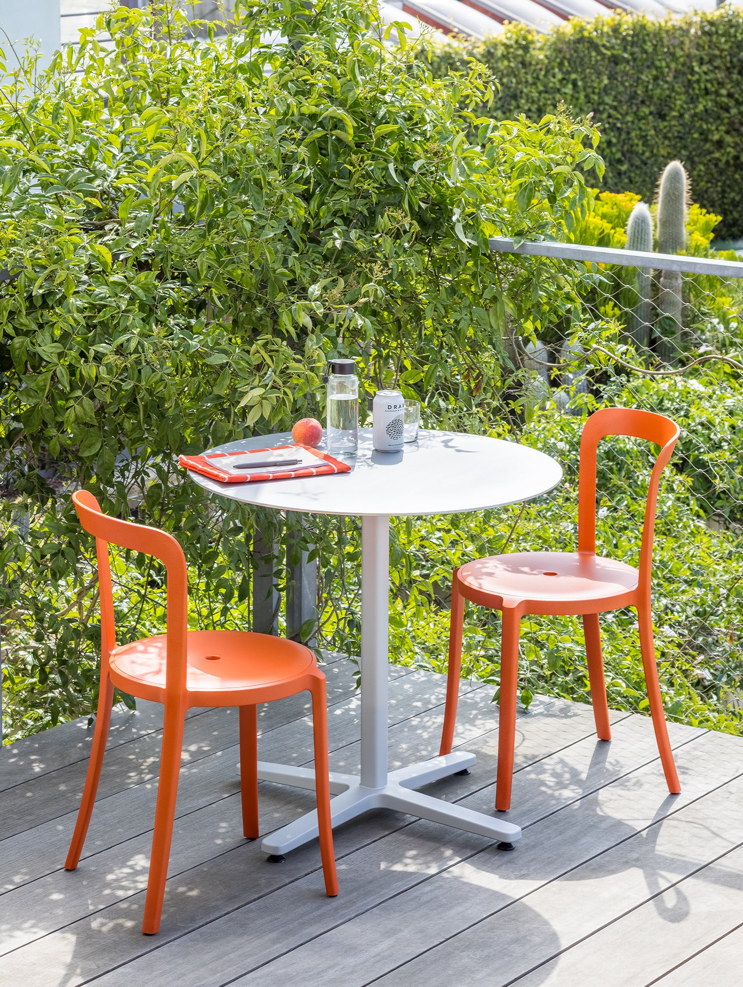 Thanks to the use of high-performance materials, the On & On Chair is suitable for indoor and outdoor settings. When not in use, the chair can be stacked rotationally to form spiral towers, reducing the amount of storage space needed.
