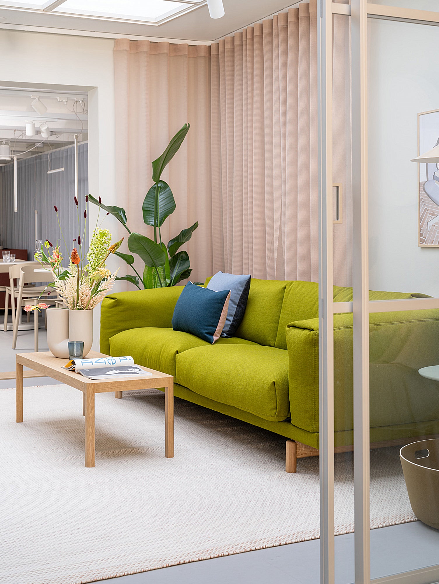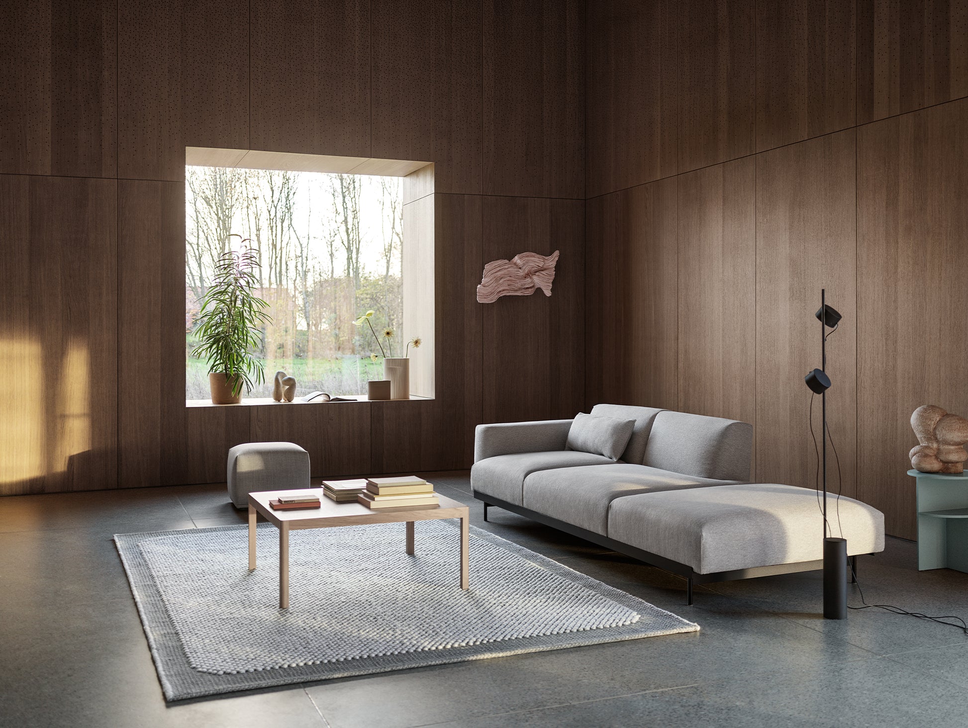 Pebble Rug is produced by combining the hand loom techniques of loop pile weaves and flat weaves. To create the loop pile pattern that gives Pebble Rug its tactile structure, the thick wool fiber yarn is wrapped around a special rod during weaving for an even and precise loop effect. This special handloom technique integrates the loop piles harmoniously into the flatweave base of the rug, created from jute fibers.