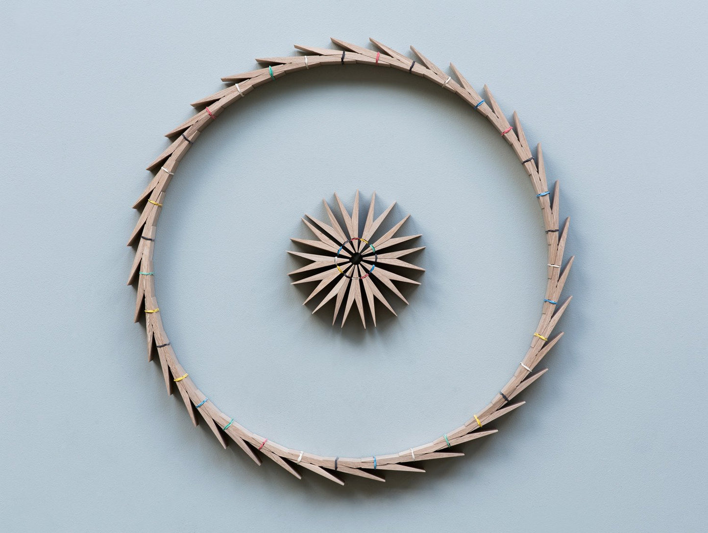 Pinch consists of two pieces of sustainably sourced solid oak or ash fastened by a single rubber band. When the rubber band gets tired, simply replace it with a new one.