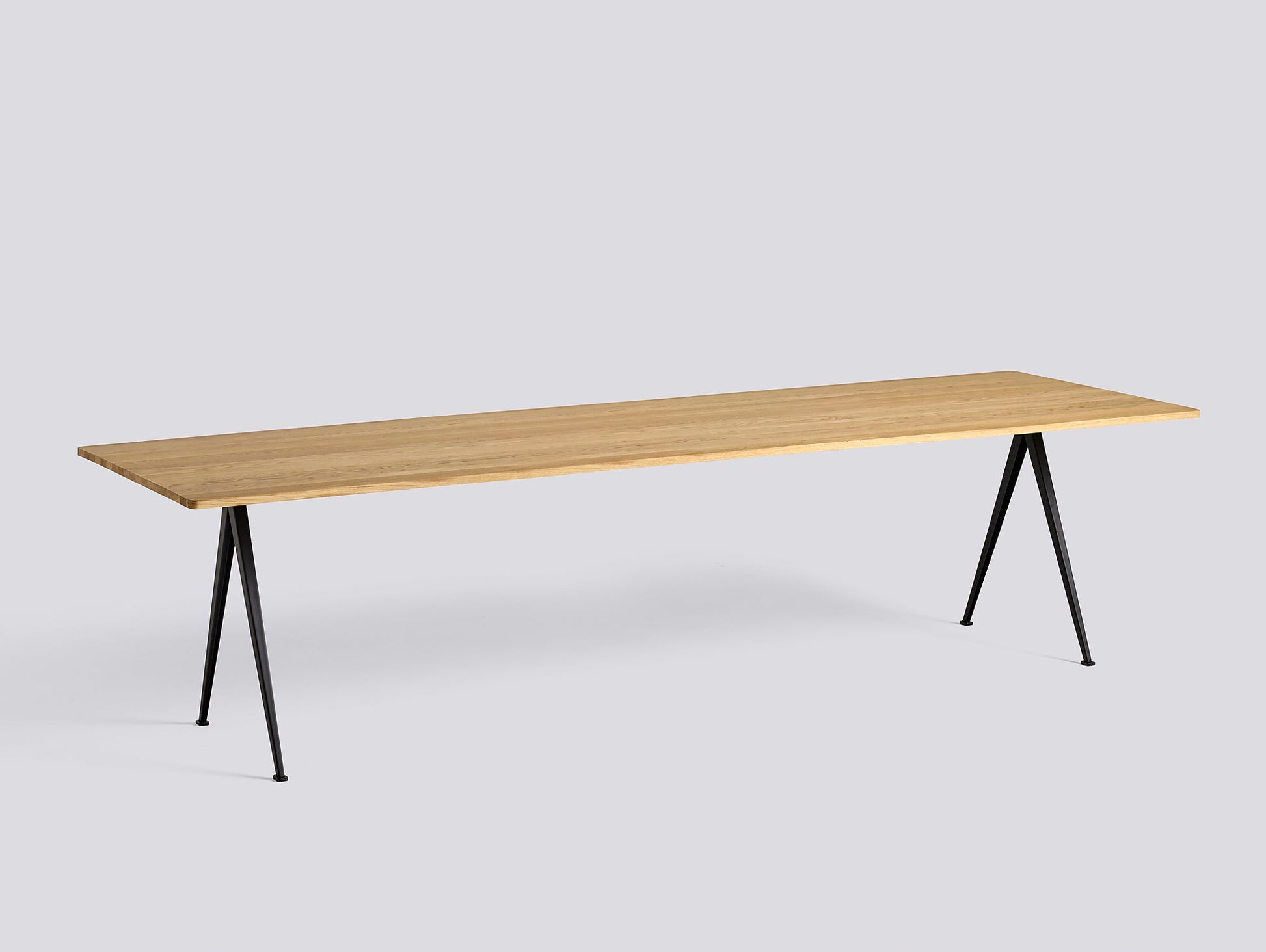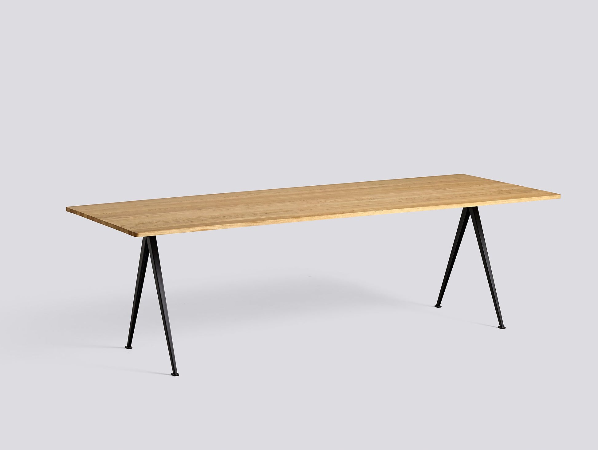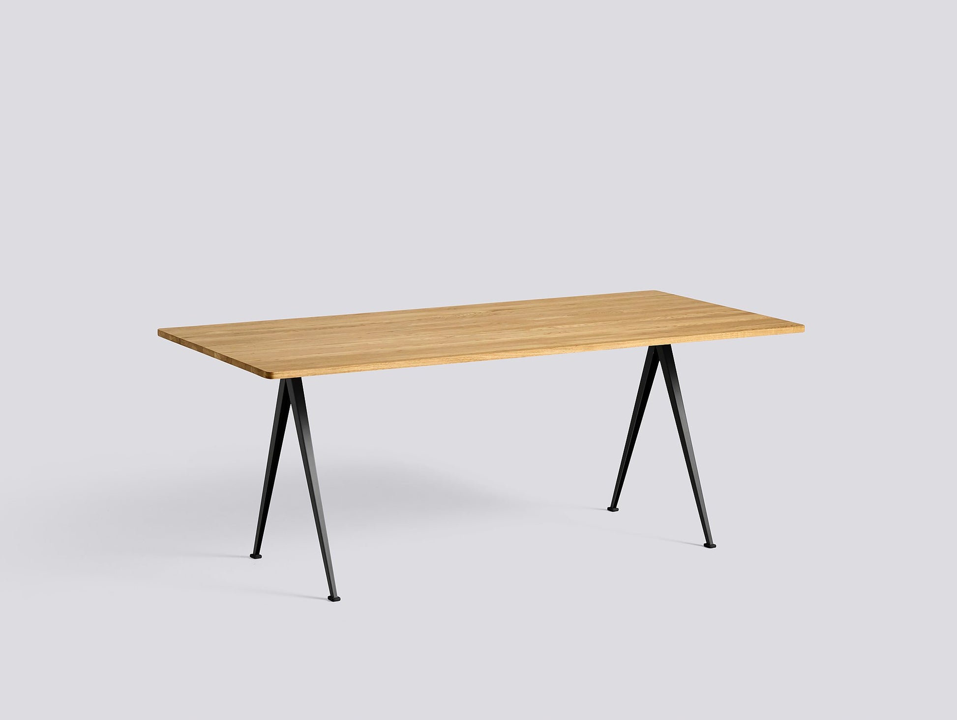 The Pyramid Table 02 is constructed from solid oak with a folded steel frame. The natural strength of oak paired with the artful steel frame creates a table that is visually light but remarkably strong. With a pioneering 1950's aesthetic, the Pyramid Table brings the pinnacle of modernist style to any environment.