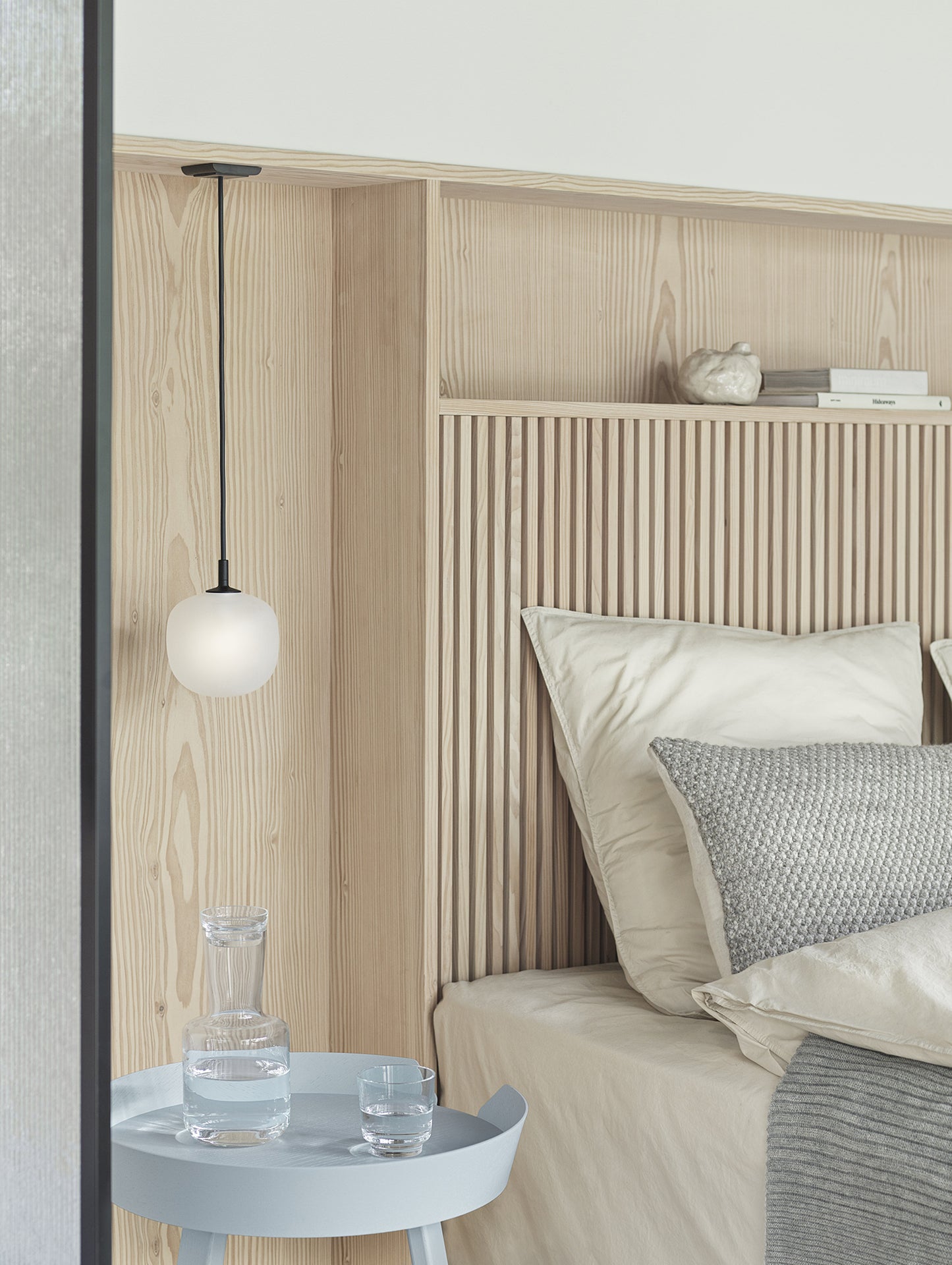 Designed by the Swedish design duo TAF Architects, Muuto's Rime Pendant Lamp offers a timeless but modern perspective through its semi-transparent glass shade, inspired by the form of acorns. The glass has been sandblasted for a classic and refined look and complemented with a minimal pendant structure.
