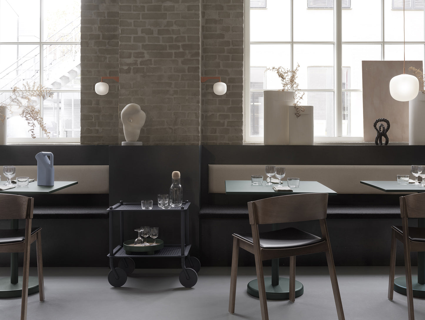 Designed by the Swedish design duo TAF Architects, Muuto's Rime Wall Lamp offers a timeless but modern perspective through its semi-transparent glass shade inspired by the form of acorns. The glass has been sandblasted for a classic and refined look, to complement the geometric lines of its projecting arm.