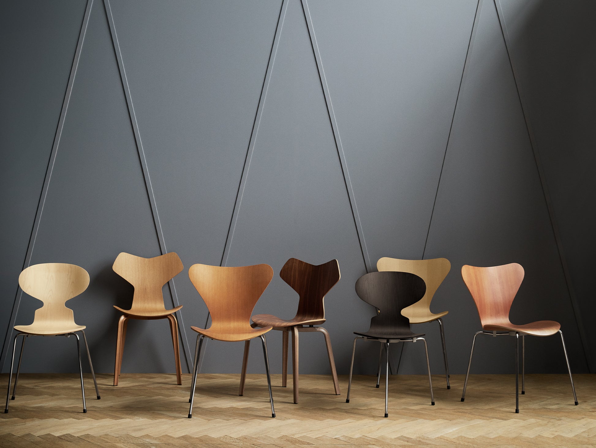 The Series 7 Dining Chair is available with coloured-ash and colour-lacquered wood. It also comes in a front-upholstered and fully-upholstered version.