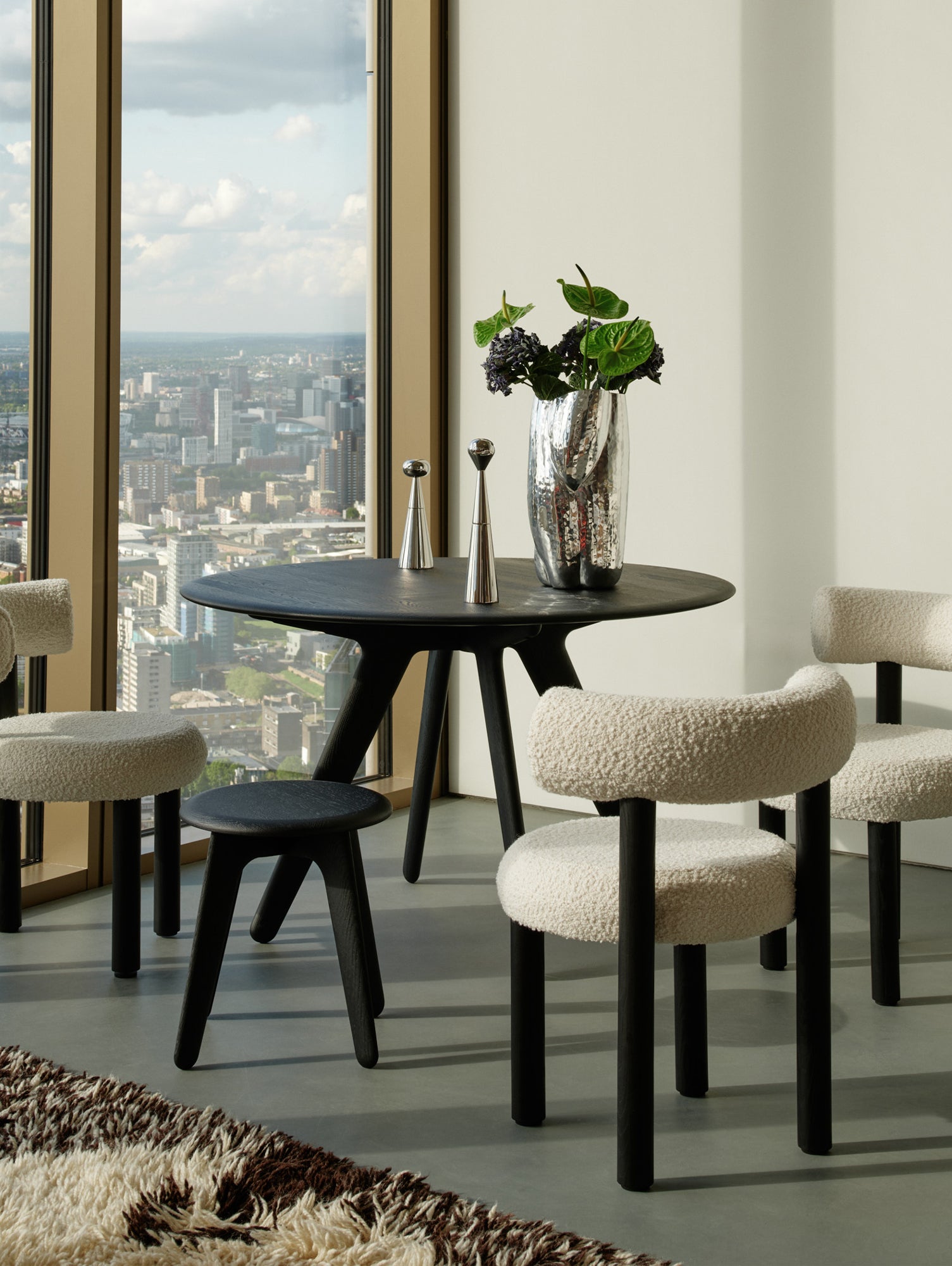 The table’s generous proportions and solid materiality are softened by gently radiused edges; adding refinement to a robust design. To complete the look, we recommend pairing this dining table with the Slab Dining Chair.