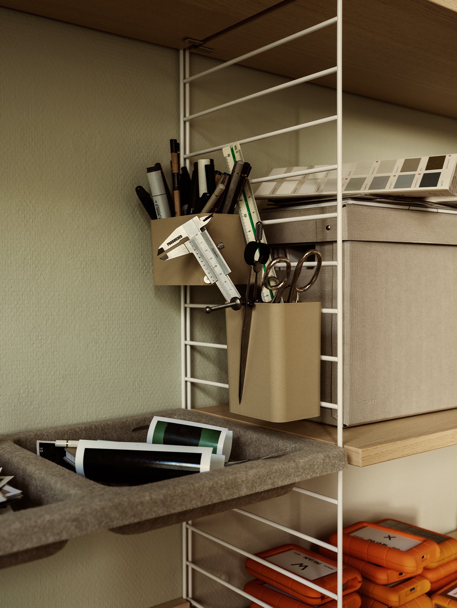 'System' by String is a modular and adaptable shelving system that simultaneously serves as a shelving, work and storage solution. The system encourages creativity in spaces of all sizes, by providing an unlimited number of options that can be quickly and easily changed however you wish. The system can either stand out or blend into the wall depending on the finishes you choose.